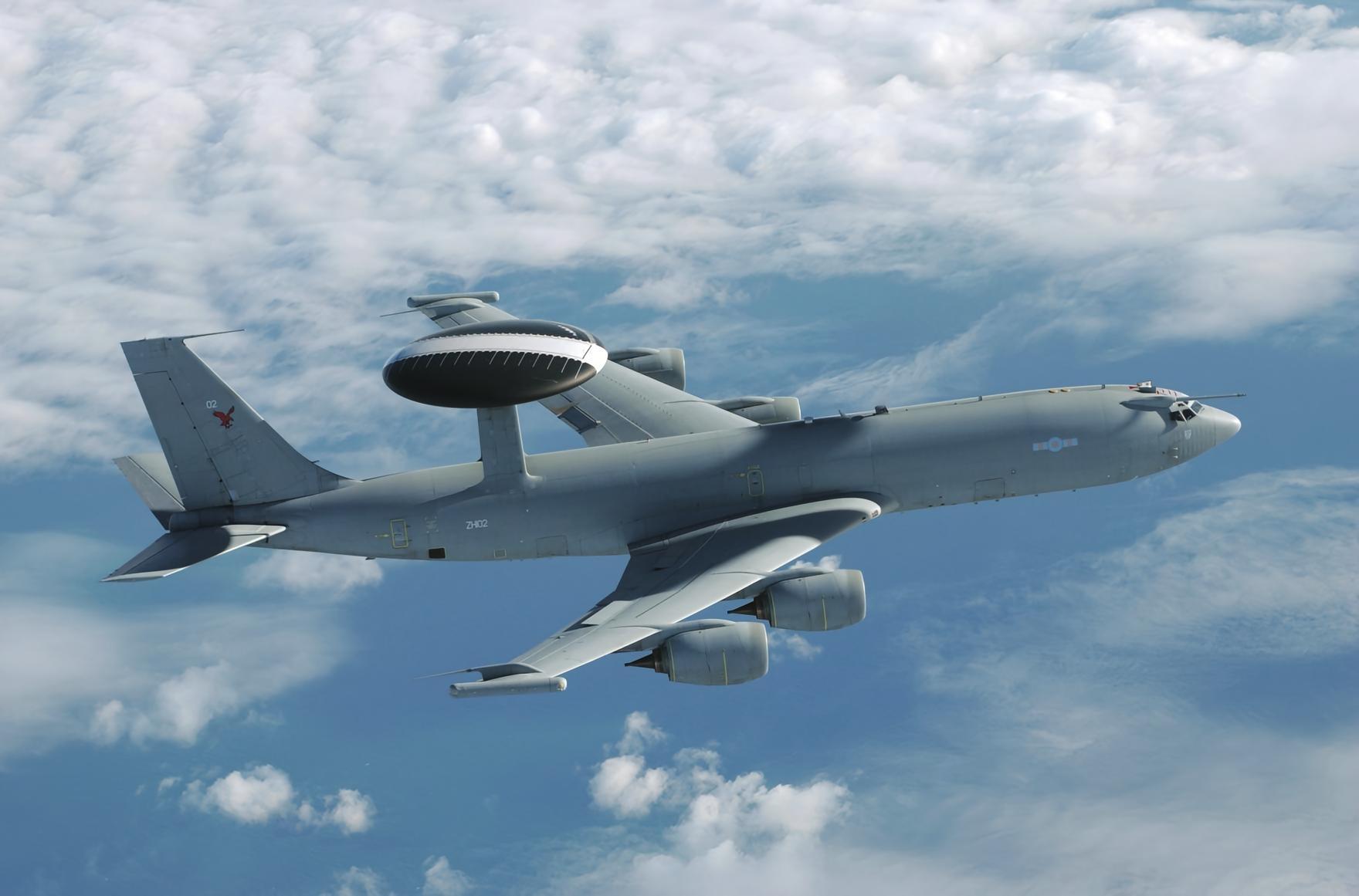 每天认识一件兵器 E-3“望楼”空中预警机E-3“望楼”(Sentry)预警机是美国波音公司生产的全天候空中预警机,截至2015年6月仍有30多架在美国空军服役,包括B型、C型和G型。E-3是一种电子设备相当复杂、性能先进的电子飞机,具有下视能力,不但可搜索监视水上、陆地和空中目标,而且可以指挥引导己方飞机作战。20世纪60年代初,由于轰炸机速度的提高、低空突防方式的广泛采用,以及远距离空对地导弹的出现,原有防空警戒系统已不能满足需要。从1962年起,美国空军开始考虑发展新的警戒系统。1963年,美国空军防空司令部与战术空军司令部提出对空中警戒和控制系统的要求。1970年,波音公司的方案被选中。1975年,E-3A的第一架原型机首次试飞。1977年3月,第一架生产型E-3交付使用。E-3预警机直接在波音707商用机的机身上,加装了旋转雷达模组及陆空加油模组。雷达直径9.1米,中央厚度1.8米,用两根4.2米的支撑架撑在机体上方。E-3预警机装有用4台普惠TF33-PW-100/100A发动机,单台推力93千牛。E-3预警机所用的多普勒脉冲雷达可以在400千米半径以上的范围内侦测高海拔低速飞行体(以雷达地平线为准),而水平脉冲波则可在650千米范围内侦测中低海拔(同样以雷达地平线为准)的空中载具,雷达组中的副监督雷达子系统可以进一步对目标进行辨认和标出敌我机,并消去地面物体造成的杂乱信号。烽火问鼎计划|全球武器装备盘点
