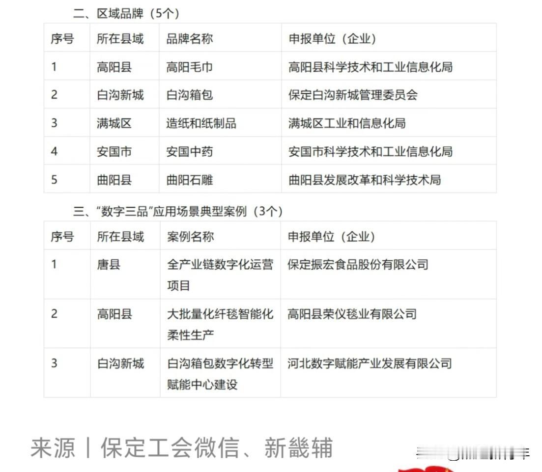 保定名品!首批(2025年度)保定本地消费名品名单正式发布出炉了!名单涵盖食品、医药、纺织、轻工等4个行业领域,共38个企业品牌、5个区域品牌、3个“数字三品”应用场景典型案例。上榜的有没有你关注喜欢的?
