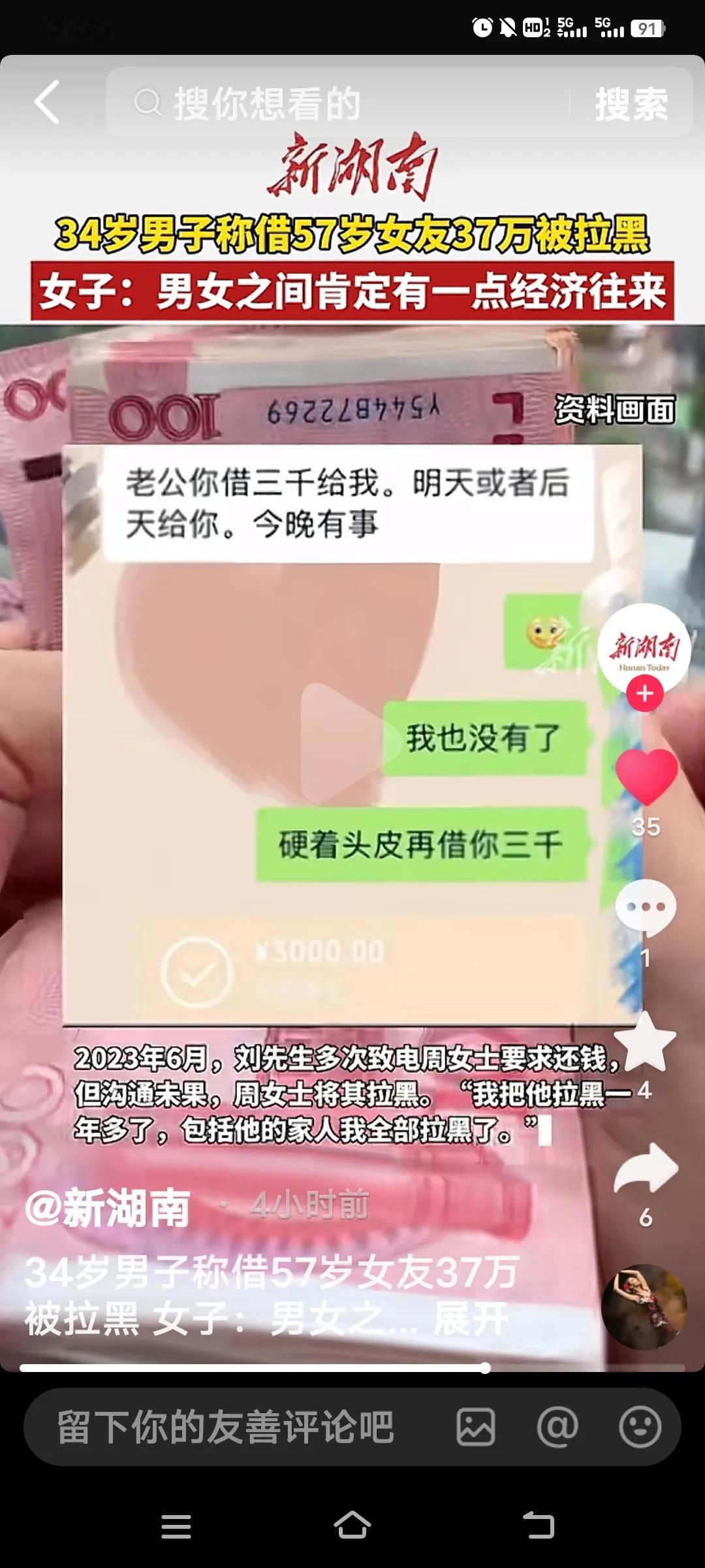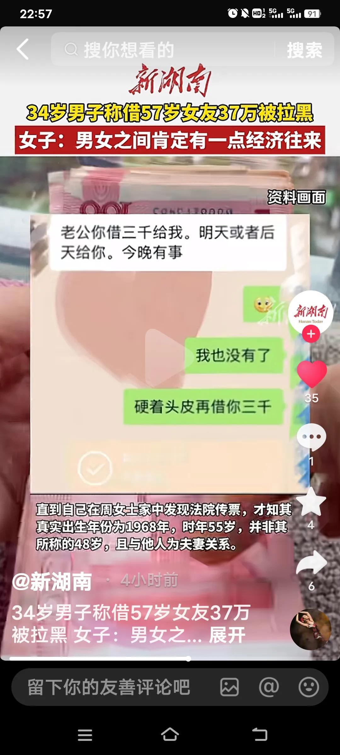 这34岁男子与57岁女友的事儿,着实令人瞠目结舌。男子借给女友37万后惨遭拉黑,可见男女经济往来中的门道深不可测。 2021年,长沙的刘先生经人介绍与周女士结识,并确立了恋爱关系。女方自称是房地产公司老板,带着他出入高端长场所!多次向刘先生借钱。 一年间,刘先生称一年期间微信显示给周女士转53.8万元。她还趁他熟偷睡转其款,向其家人借款。聊天记录里,周女士一口一个“老公”,刘先生也予以回应。直到自己在周女士家发现法院传票,刘先生才知晓周女士生于1968年,已55岁,并非她所说的48岁,且她与介绍人是夫妻关系。 2023年,刘先生要求周女士还钱,她只还了16.8万,剩下的37万,她竟直接拉黑刘先生,还理直气壮地称,拉黑刘先生及其家人已有一年多。 更可气的是,她还说:“男女之间肯定有点经济交往,资金周转一下很正常,他觉得我欠他钱可以去起诉呀!”这手段,简直就是江湖老手,实在是气人!大龄男女交往 交友奇葩经历