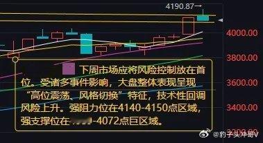 A股下周策略研判:风控优先,震荡中优化持仓本周A股大盘冲高回落、小幅收跌,多空博弈的激烈格局将在下周延续,业绩成色成为资金选股的核心锚点。展望下周,市场多空分歧进一步加大,短期调整压力与中长期乐观预期形成对冲,震荡分化的运行态势料将持续。风险控制需置于首位,建议借震荡之机优化持仓结构,为后续行情做好布局。从大盘趋势来看,当前市场凸显“高位震荡、风格切换”的特征,技术性回调风险有所升温。1月14日市场出现剧烈波动,单日成交额攀升至3.99万亿,多空对决白热化,前期部分热点板块已出现显著回撤。指数运行区间方面,下周上证指数核心支撑位落在4096-4089点。若该区间失守,大概率会触发技术性抛售,下方支撑可依次关注4072点,极限支撑位看向4032点。上行压力则聚焦4127点,该点位既是5日均线位置,也是近期高点所在,有效突破后,更强阻力位将出现在4147-4150点区域。热点主线可沿科技成长与政策受益两大方向布局。科技成长领域,重点关注AI与数字经济中的AI新基建赛道,如光模块、智算中心等细分方向,但需回避高位标的;半导体/芯片作为科技自主的核心阵地,具备长期配置价值;商业航天、脑机接口等主题交易热度较高,板块拥挤度上升,追高需保持谨慎。政策受益板块可关注四条支线:一是“反内卷”与限产稳价相关领域,规范光伏、新能源汽车等行业竞争秩序,利好产业链龙头盈利预期修复;二是有色金属板块;三是城市更新与雅下水电建设相关标的;四是创新药、消费及高股息等具备防御属性的板块。事件层面,多空因素交织。1月19日起融资保证金新规实施,短期对市场情绪形成利空;同日下调再贷款利率政策落地,有望对局部板块形成利好支撑;美国政局变动、军费预算等外部消息存在不确定性;天普股份被立案调查引发股价巨震,相关风险亦需警惕。操作策略上,建议控制仓位至中等或以下水平,秉持“弃高就低”原则,重点布局股价处于低位、近期有资金流入迹象的板块,如部分医药、消费、建材标的,以及基本面扎实的科技龙头企业。具体应对可分三种情形:若指数放量站稳4127点,可小幅加仓,关注券商板块及放量领涨主线;若指数在4096-4127点区间震荡,宜持仓观望,或在主线板块内进行高抛低吸操作;若指数收盘价跌破4089点且未能快速收回,需主动降仓,转向防御性资产。综合判断,下周A股需以风控为首要原则。多重事件扰动下,市场维持“高位震荡、风格切换”格局,技术性回调风险上升,指数强阻力位4147-4150点,强支撑位4089-4072点。