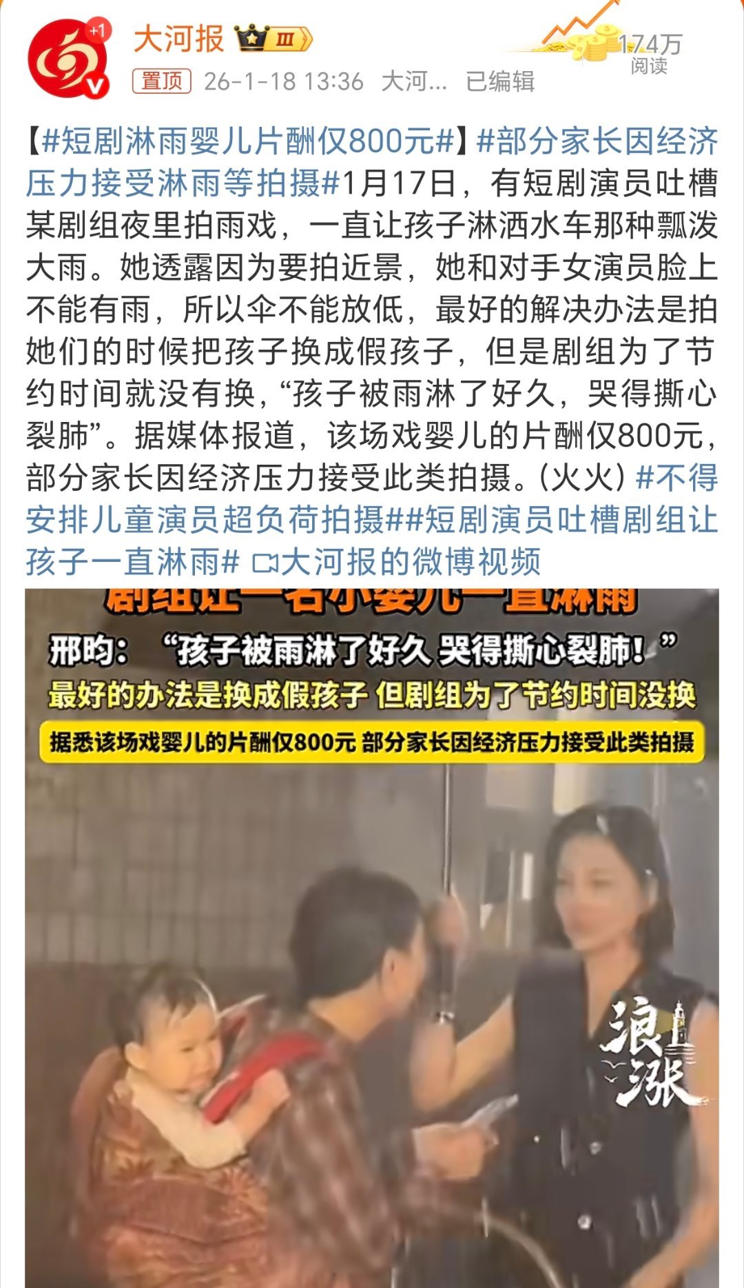 短剧淋雨婴儿片酬仅800元看小孩冻得发抖……