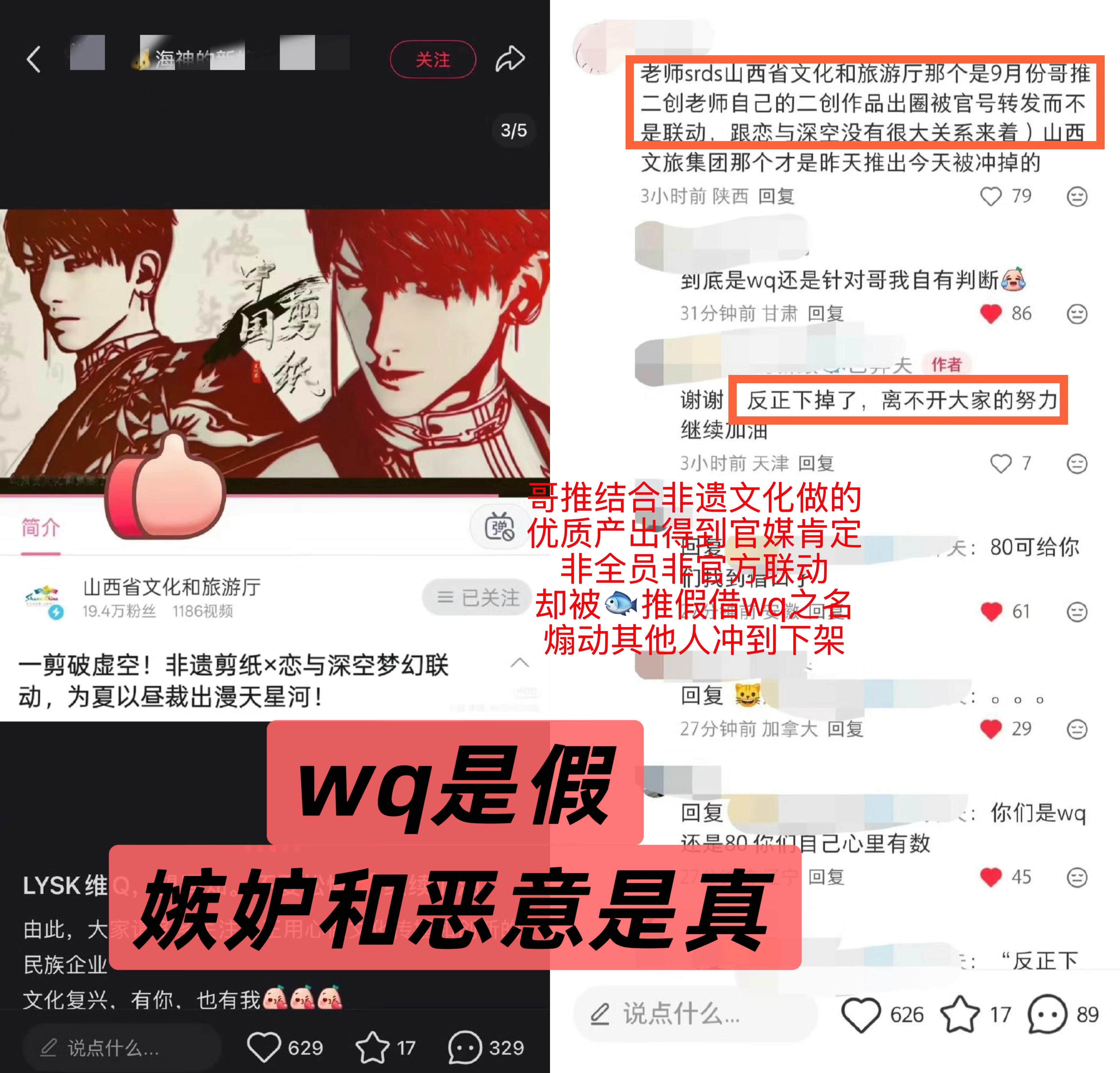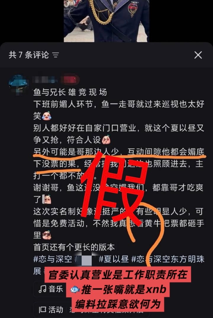 给果们看看短短几天时间,膘⃟子⃟小⃟姐⃟都在社区对夏以昼做了些什么图1 在社区近期闹的沸沸扬扬的wq行动里,假借wq之名恶⃟意⃟🍊哥推优质二创,哥推为夏以昼做的非遗剪纸作品,因出色的技术和宣传优秀传统文化被官媒盛赞多平台置顶,非官方联动,却被此人带头煽⃟动⃟不知情的人冲下架了图2 线下活动不少repo说哥人气很高,围着哥哥的人最多,图3 编xnb暗戳戳拉⃟踩⃟人气是在 官委穿身执舰官服就得到线下好评,归根结底是夏以昼的角色魅力太大,膘⃟子⃟小⃟姐⃟去线下发现小苹果人多夏以昼受欢迎就开始产出假料图4到图7,天生领袖和太阳都是夏以昼官设,有明确的剧情文案和专属藏品,服饰,玩偶等相关,膘⃟子⃟小⃟姐⃟从去年惦记骰太阳晨昏线一路骰到今年,现在天生领袖也骰,自推设定这么拿不出手吗写这条想让大家意识到,深空社区遐四家一家比一家烂⃟透⃟,某些明目张胆骰哥官塑,某些躲在阴⃟暗⃟处⃟挪⃟走⃟你推设定,人设是根基,果们要敏⃟感⃟一些,不仅平时要多舞,更要积极qkf维护,同时要勇于反驳遐家的xnb