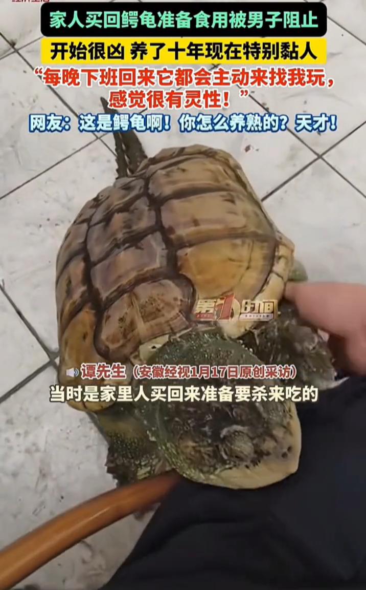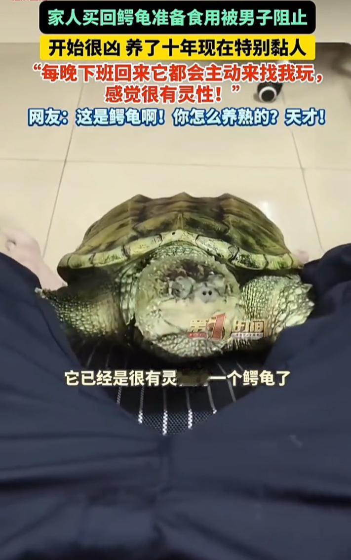 这下科学都解释不清了!广东佛山,家人买了一个鳄龟准备食用,男子不忍,看到后就拦下来养了起来,而且一养就是10年,让人意外的是,鳄龟在别人看来是相当凶猛的动物,可男子养的这只竟然像黏人的小狗,网友们都不敢相信 谭先生介绍,这只鳄龟是当初家人买回来准备食用的,但被他阻止了,家人看他态度如此坚决,也就放弃了吃的念头,而他则把鳄龟养在阳台白色的箱子里 一开始,这只鳄龟也很凶,夸张一点说甚至是能蹦起来咬人的那种,可养了几年后,他发现情况有所改观,这只鳄龟不仅不在凶猛,而且异常粘人,经常自己从箱子里爬出来到客厅和他玩,有时候下班回家也会上前贴贴 这段视频在网上传开后,很多网友都觉得不可思议。鳄龟在人们印象中是相当凶猛的动物,咬合力强,攻击性高,怎么可能会变得这么温顺黏人? 对此,有网友表示:鳄龟虽然凶,但不傻,它也知道不跟你熟,它就熟了 但也有网友说:这不是大鳄龟,这是拟鳄龟,拟鳄龟这就是成体了。大鳄龟这个体型还是幼崽。大鳄龟养不熟,这种拟鳄龟可以尝试当宠物饲养,也不是每一只拟鳄龟都可以亲人。大鳄龟就别试了,几乎不太可能 其实我觉得从这个事来看,动物的性格确实有很大的可塑性。人们常常习惯将动物按照某种固有的形象来定义,但实际上,动物的行为不仅仅受生物天性的影响,环境和主人对它的照料也会深刻地改变它们的表现。鳄龟的转变,或许能让我们重新审视“凶猛”这种标签 当然,需要提醒的是,鳄龟毕竟是野生动物,具有潜在攻击性,不可轻易模仿家养。谭先生与鳄龟的和平相处建立在十年如一日的耐心照顾和相互熟悉基础上,这个过程漫长且需要专业知识