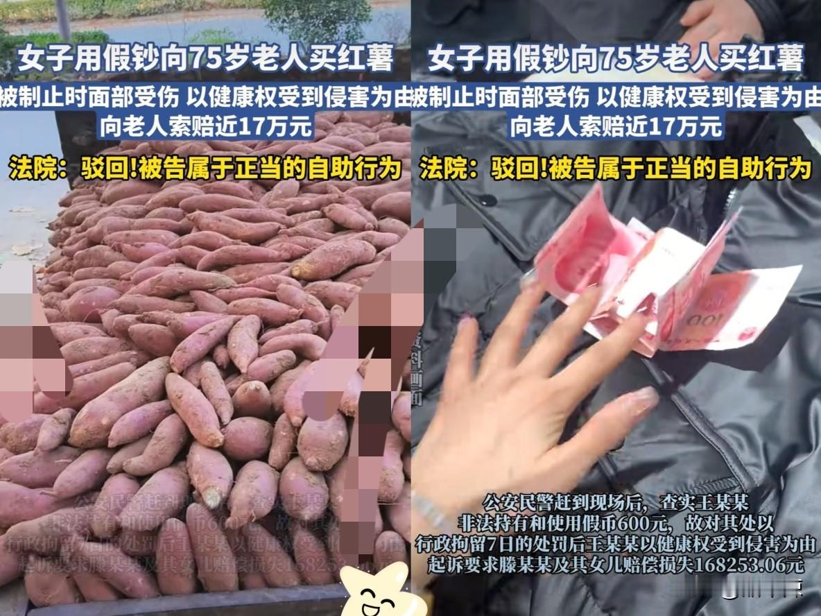 见过离谱的,没见过这么颠倒黑白的! 75岁南京大爷摆摊卖红薯挣辛苦钱, 被女子用假币坑了一把,没想到这女的胆大包天还敢回头买红薯! 被大爷父女当场认出抓包,拉扯中磕伤了脸,居然反过来索赔16万多! 这操作属实把人看懵了!大爷父女扭送她去派出所,完全是情急之下的正当自力救济——总不能眼睁睁看着骗子拿着假币坑完老人还溜之大吉吧? 民警一查,这女子竟持有600元假币,被拘留7天,纯属咎由自取! 法院直接驳回她的索赔诉求,这判决简直大快人心!这不仅是维护了老人的权益,更是明明白白告诉所有人:法不向不法让步!坏人有错在先,就别想耍无赖讹人! 你遇到过这种“恶人先告状”的奇葩事吗?你怎么看看?