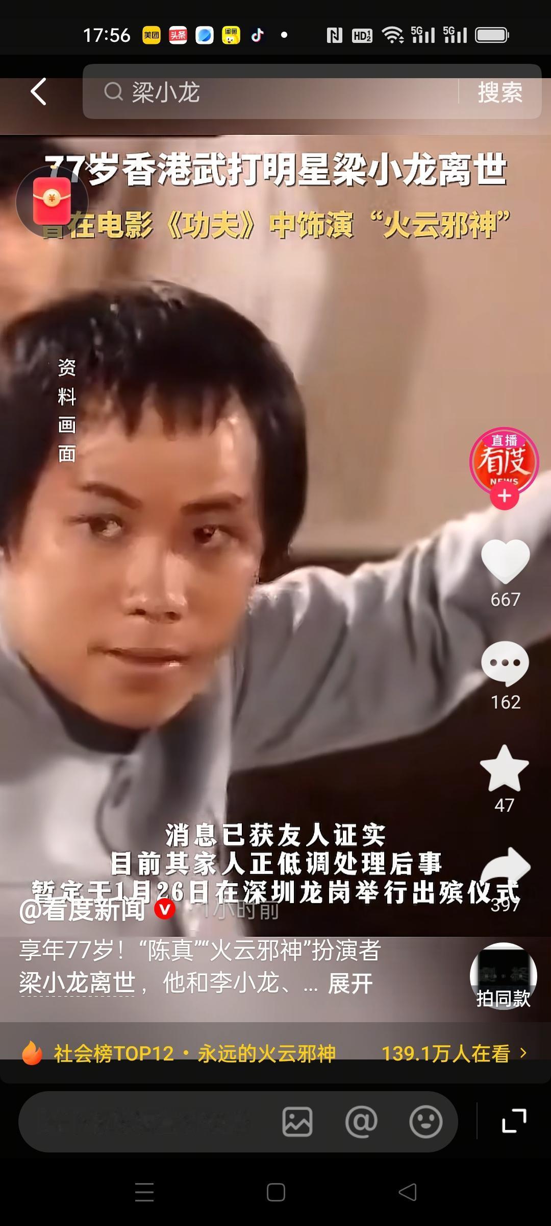 梁小龙先生的离世,最心痛的莫过于我们这些影迷。 从一脚踢碎东亚病夫牌匾的陈真,到天下功夫,唯快不破的火云邪神,梁小龙一直是我们心中的功夫巨星。 他与李小龙,成龙,狄龙并称香港四小龙,可巨星也有陨落的时候,却是这么突然。措不及防的我们没有等到梁小龙最新的作品,等来的是噩耗,享年77岁。 愿先生一路走好!