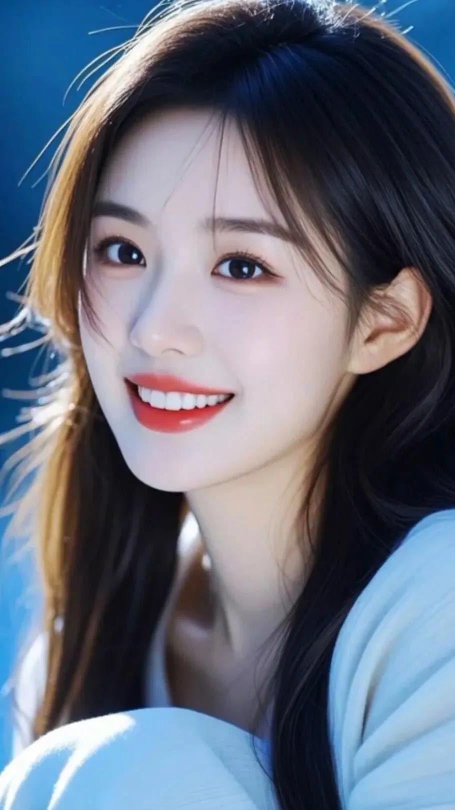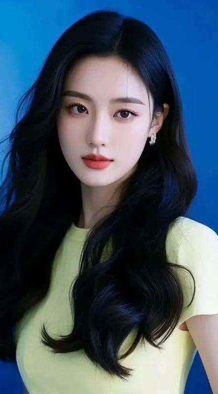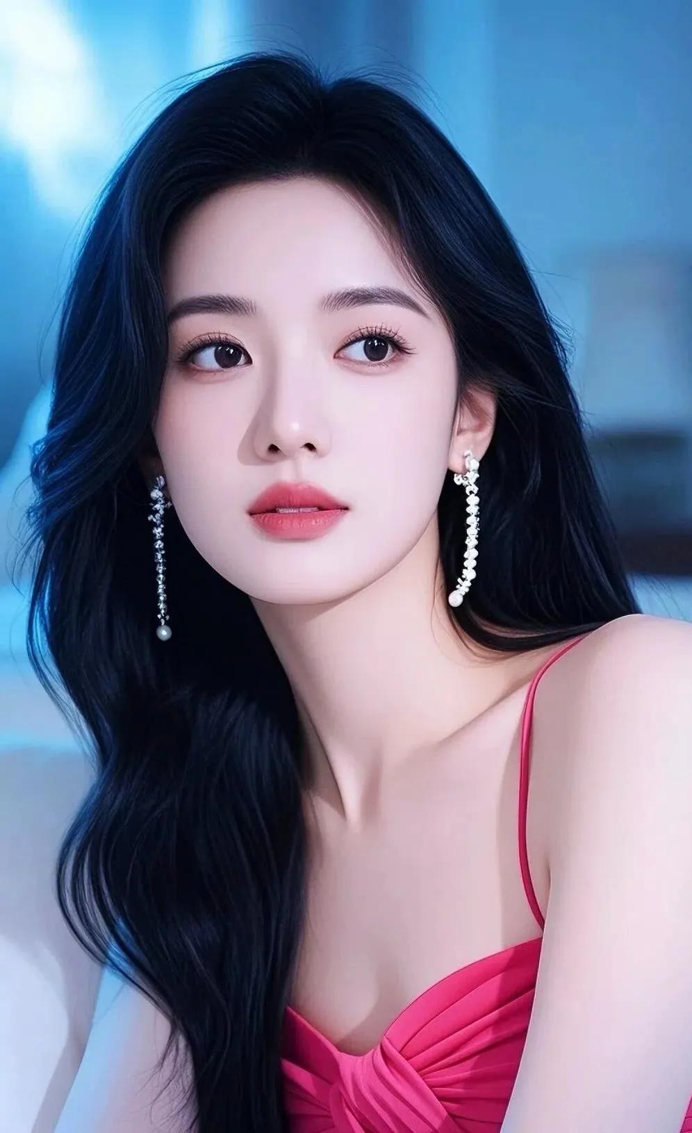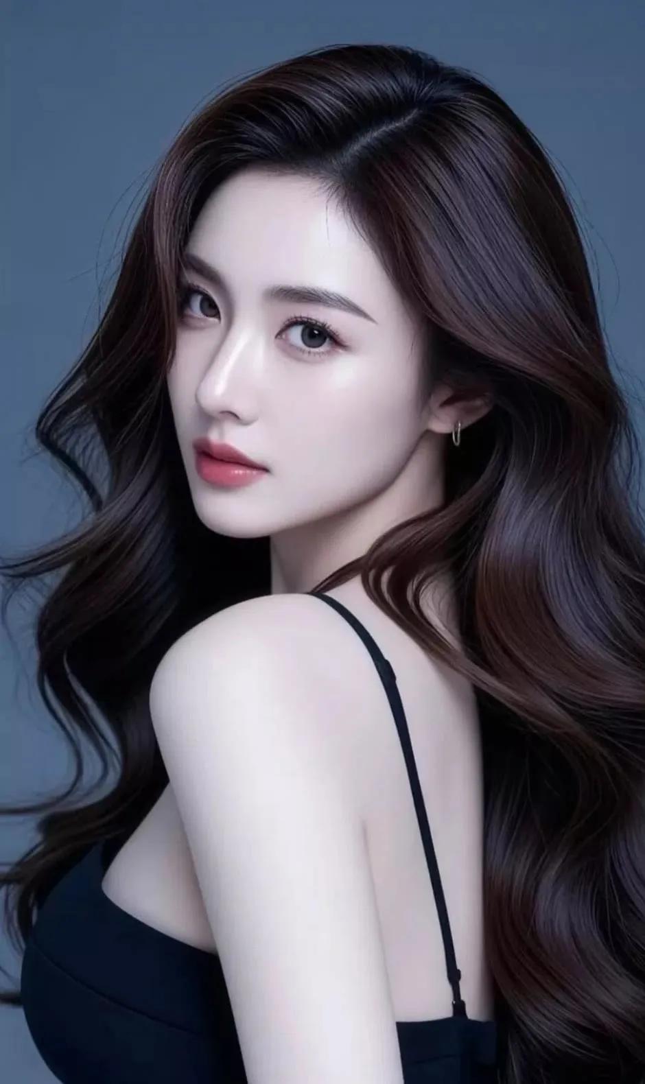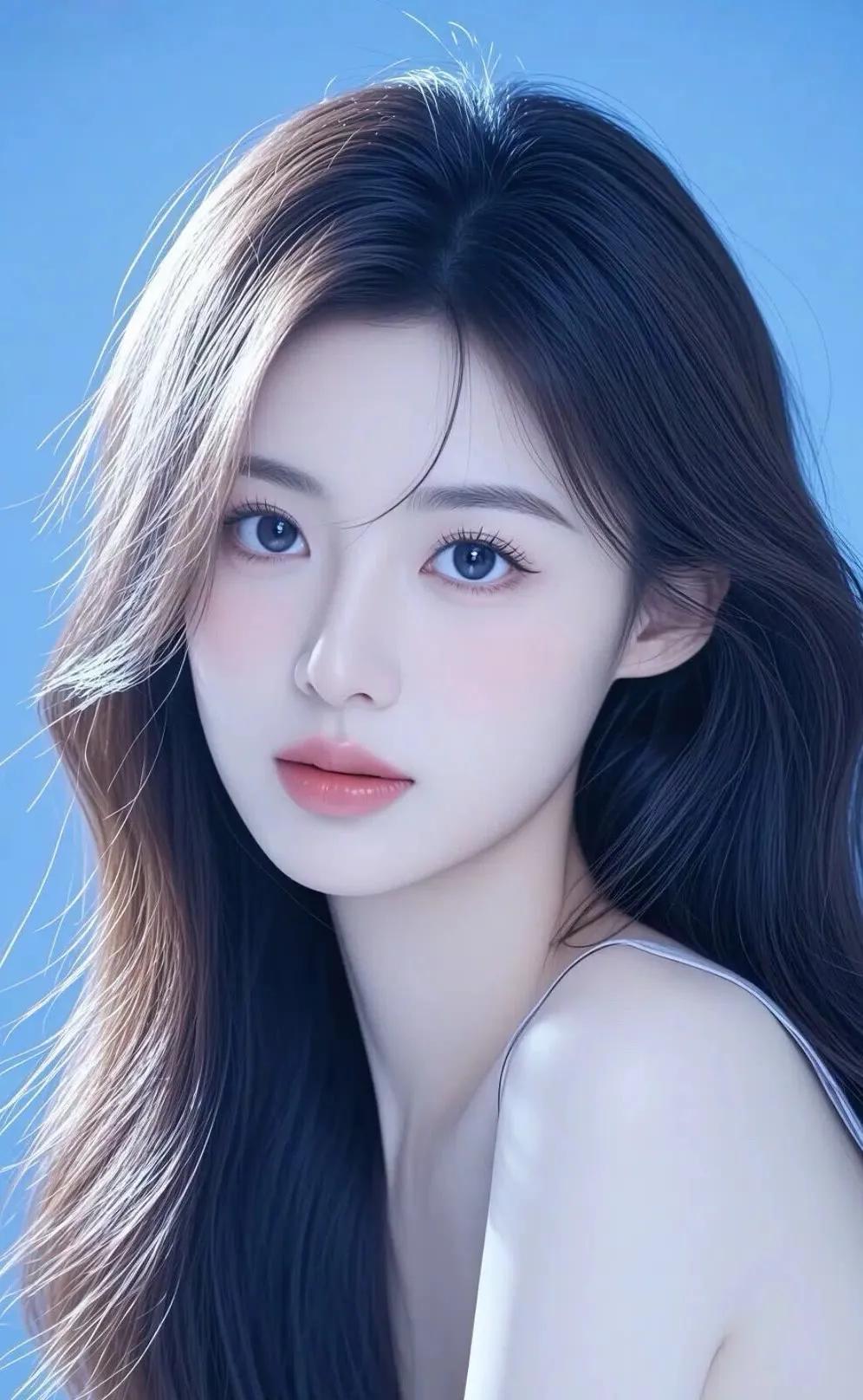 冷艳的蓝调背景,温柔的红唇,优雅的东方美人