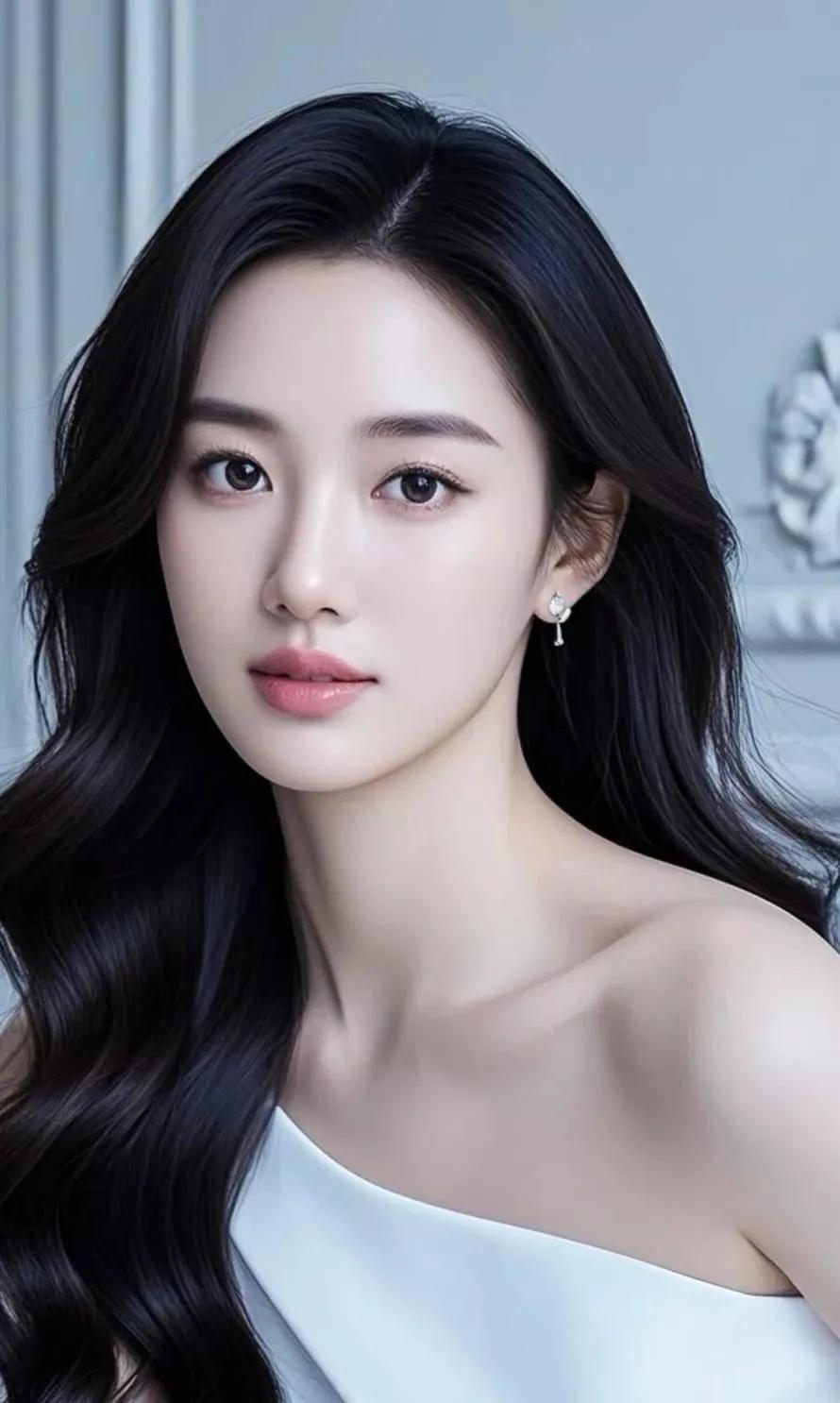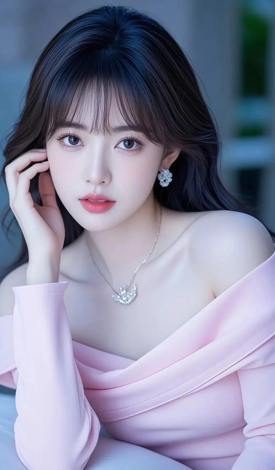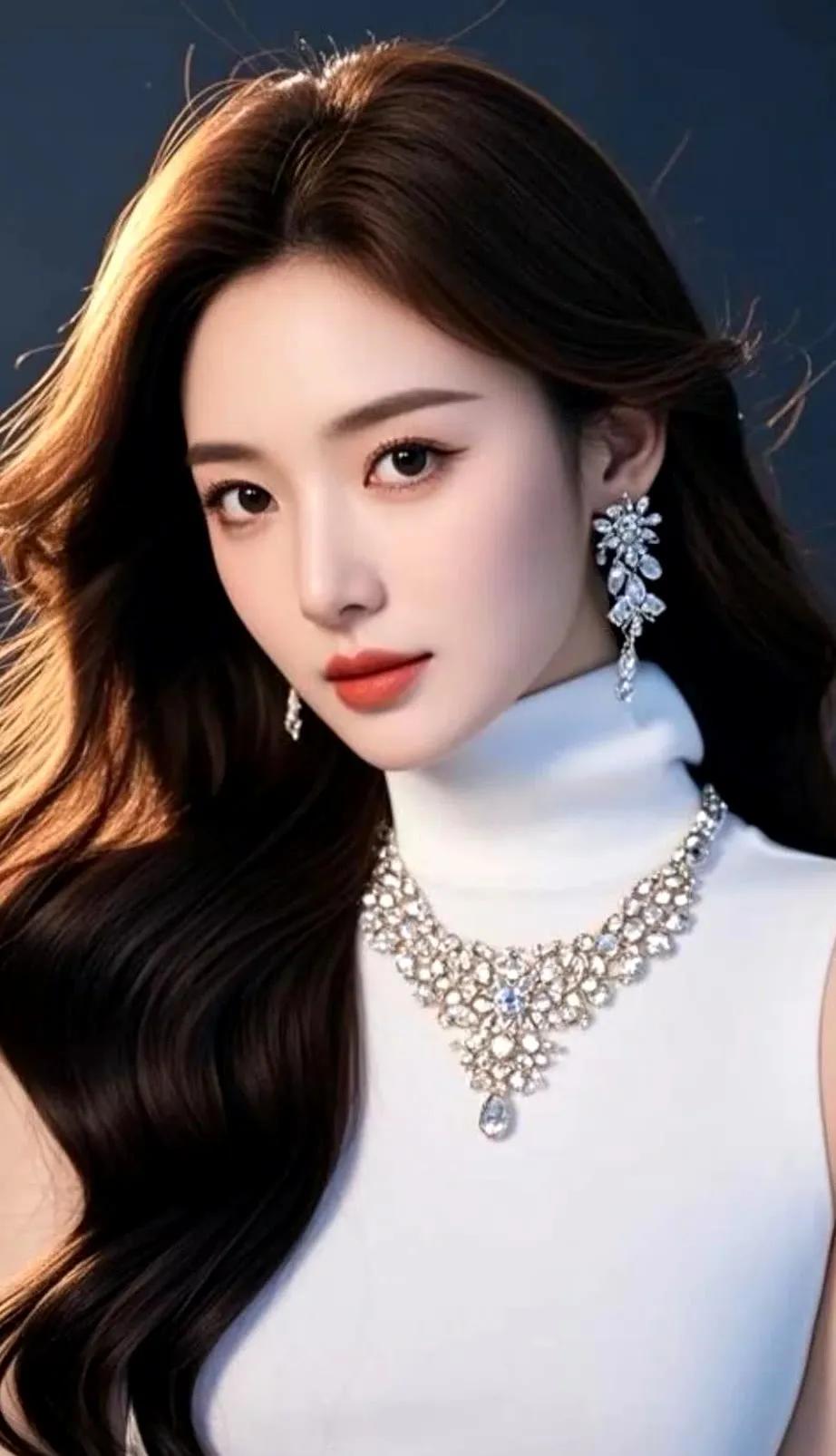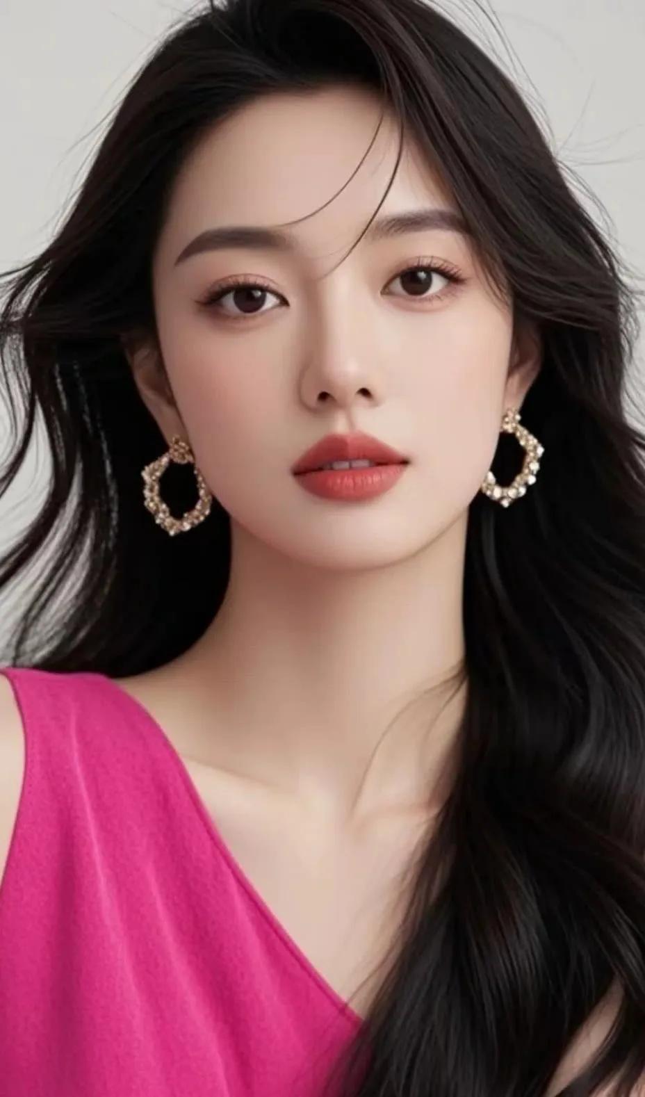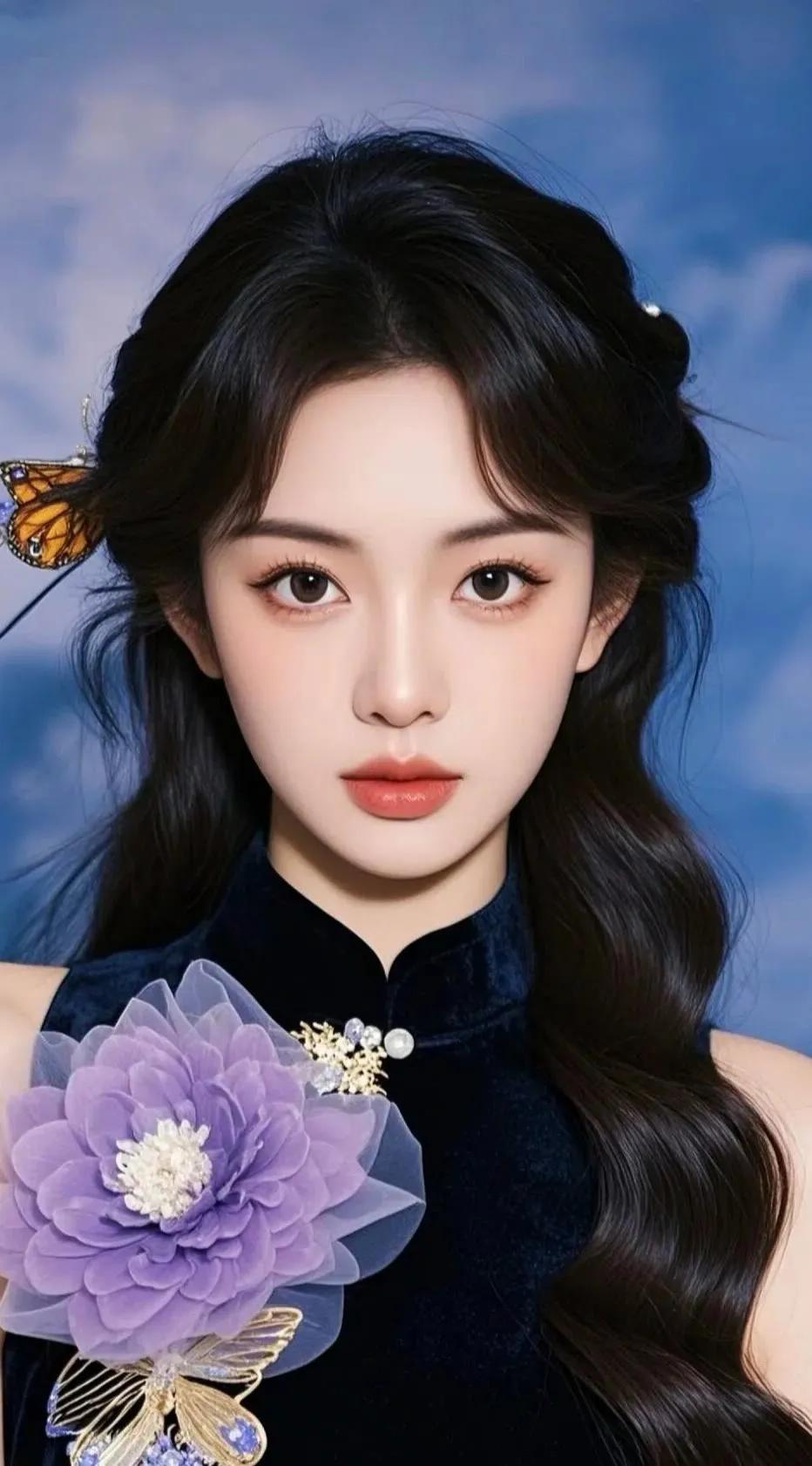 冷艳的蓝调背景,温柔的红唇,优雅的东方美人