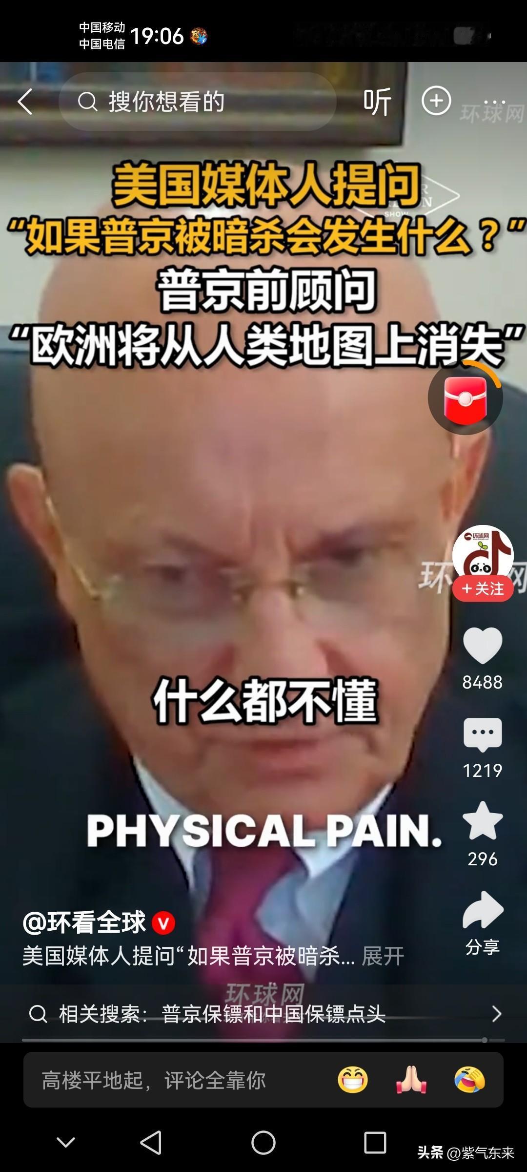 这个美国记者提出一个足以毁灭世界的问题! 美国媒体提问普京的前顾问:如果普京遭到暗杀会发生什么?(暗示乌克兰暗杀普京) 普京前顾问谢尔盖·卡拉加诺夫回答:欧洲将从人类历史上消失,开始用常规武器攻击欧洲,然后开启核浪潮! 俄罗斯有这个能力和实力,让欧洲从人类历史上消失! 谢尔盖·卡拉加诺夫的回答眼神坚定,铿锵有力!也是告诫乌克兰以及欧洲和一切敌对势力,不要没事找事! 更不要激怒俄罗斯!