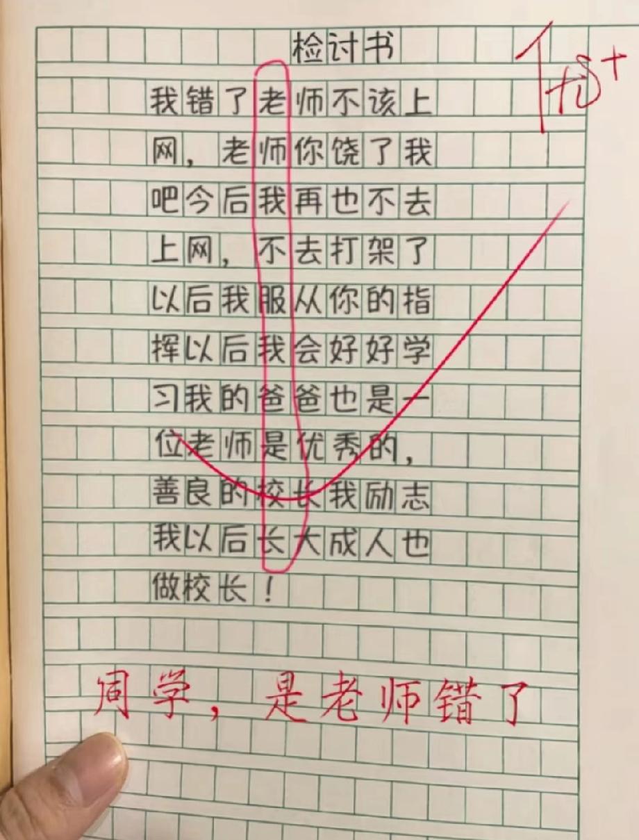 小学生写检讨暗戳戳“威胁”老师,老师看完直接认怂:是我错了!