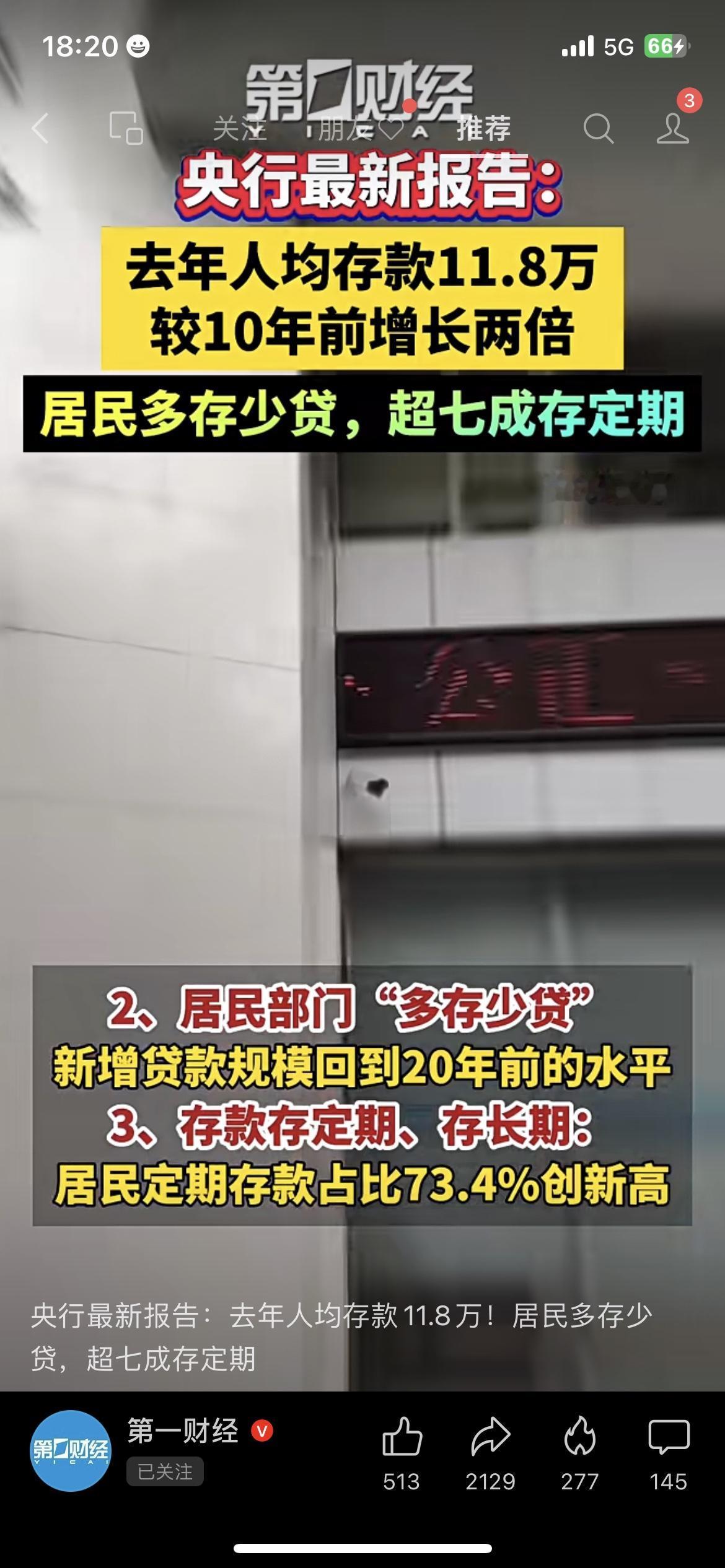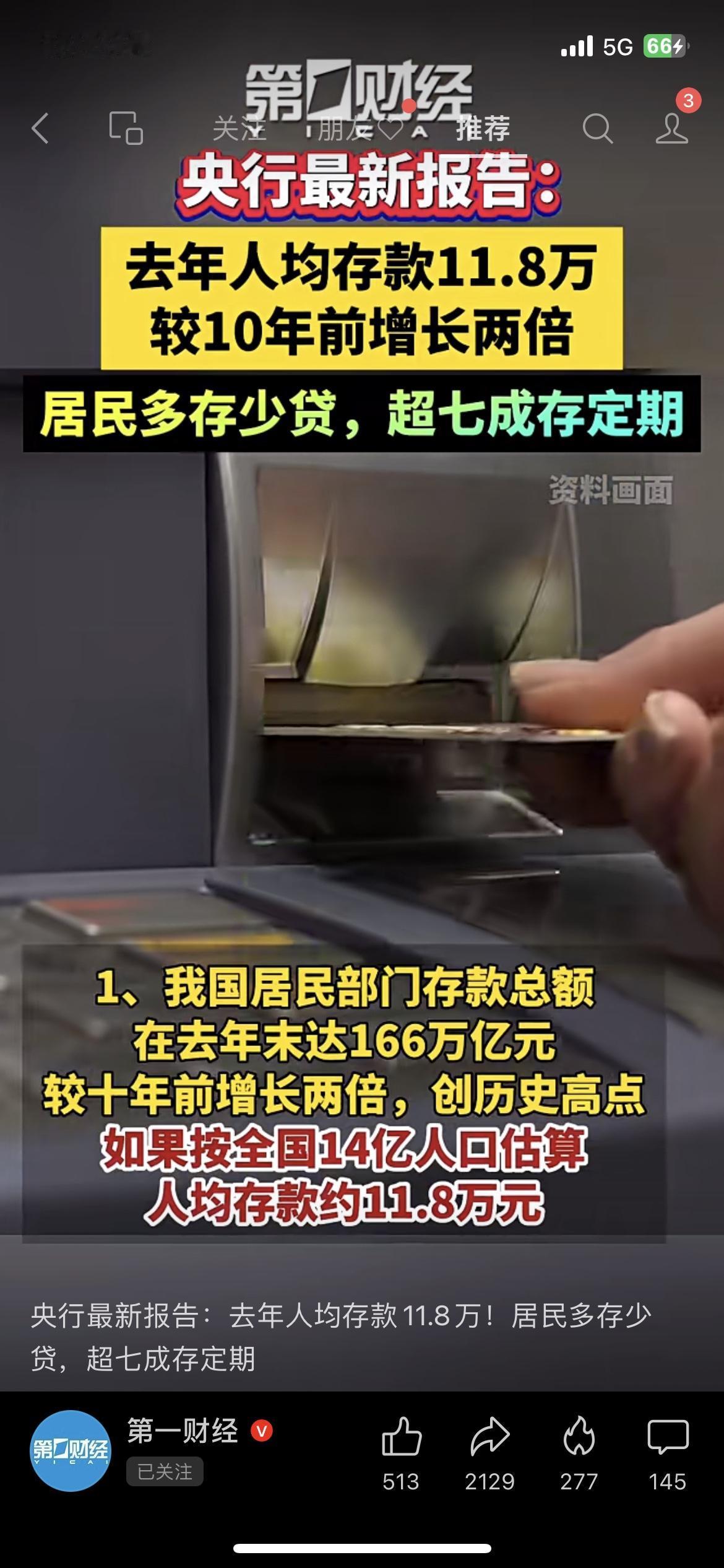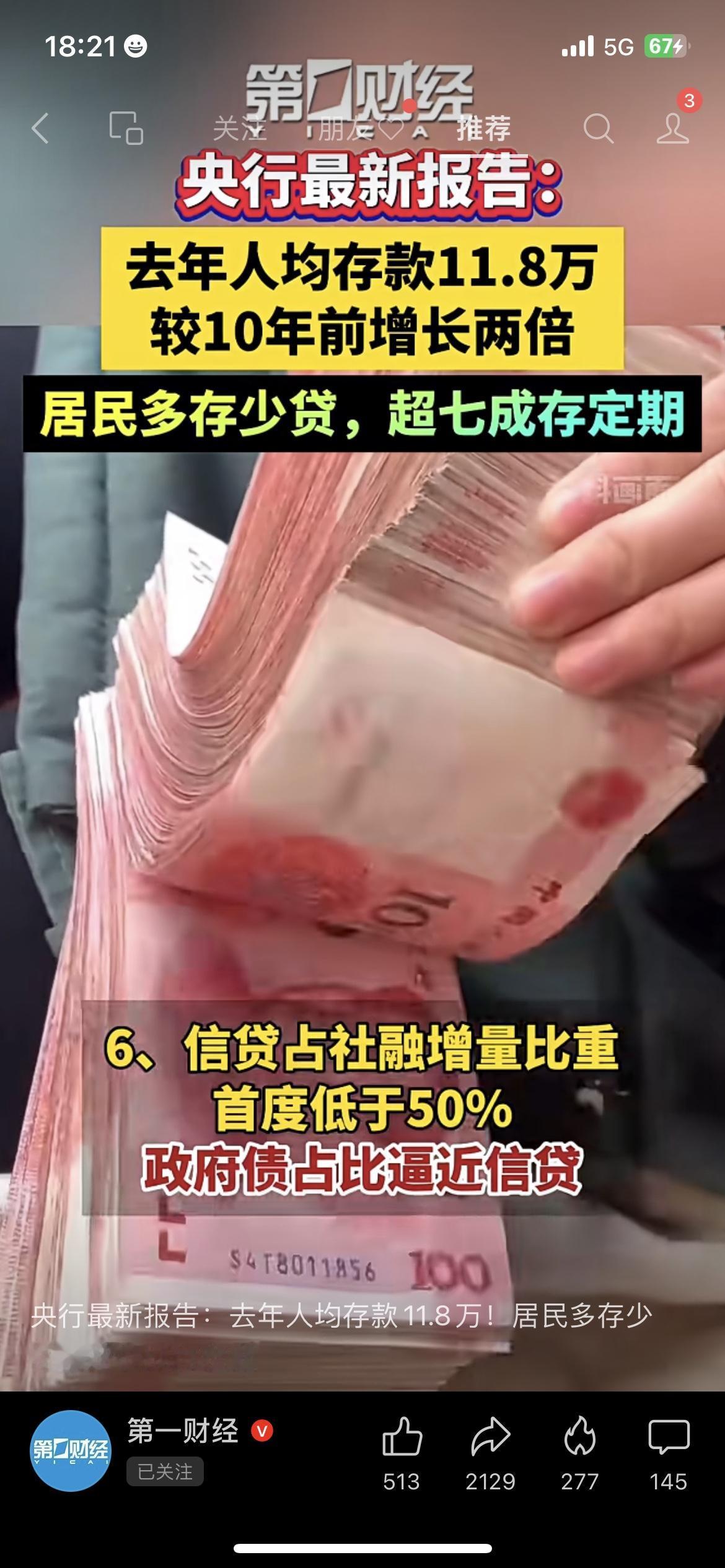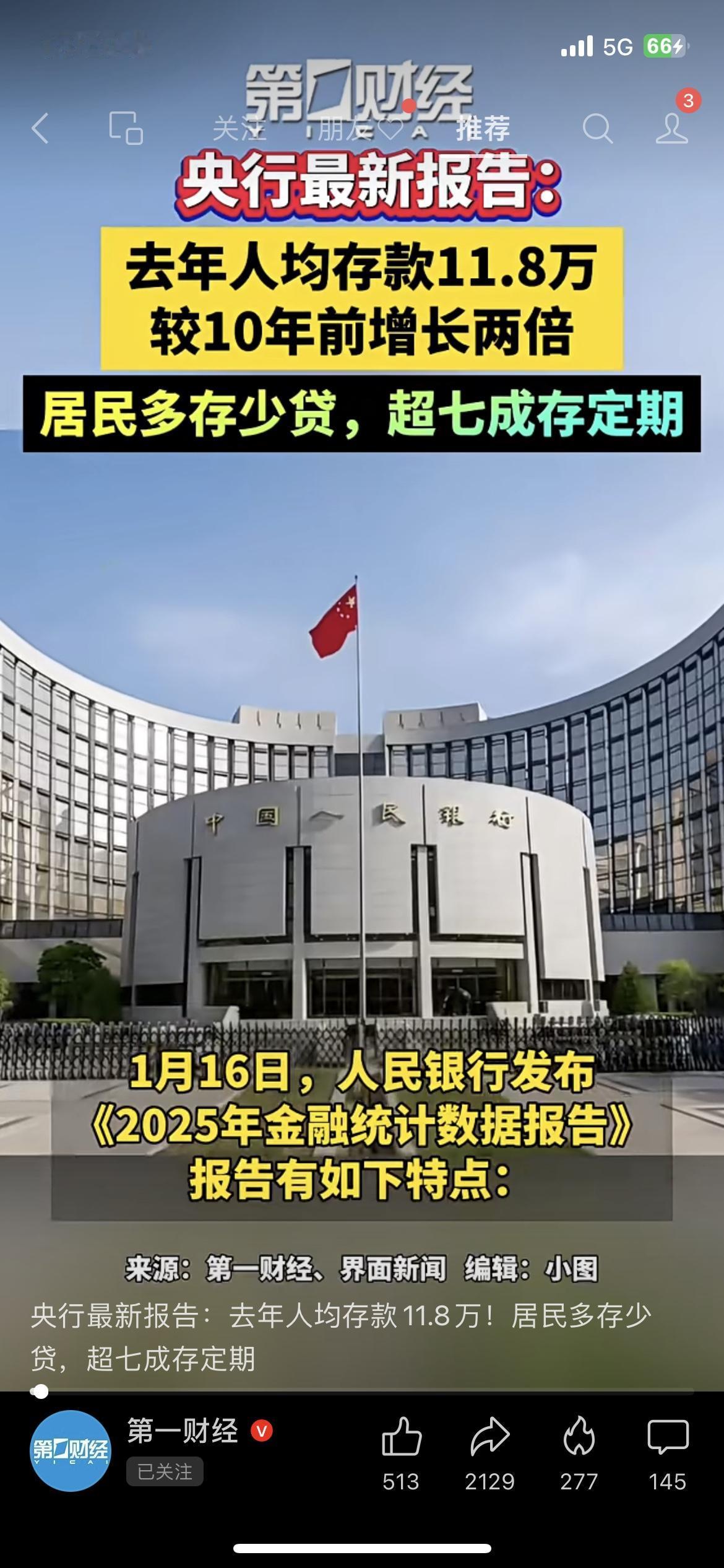 人均存款11.8万!较10年前翻两倍,超7成全存定期!大家都忙着多存钱、少借钱,房贷利率3.2%还扎堆提前还,到底在怕啥? 存款涨的不是安全感,是普通人对未来的焦虑。 你今年存了多少钱?会优先提前还房贷吗? 人均存款 央行报告 民生经济