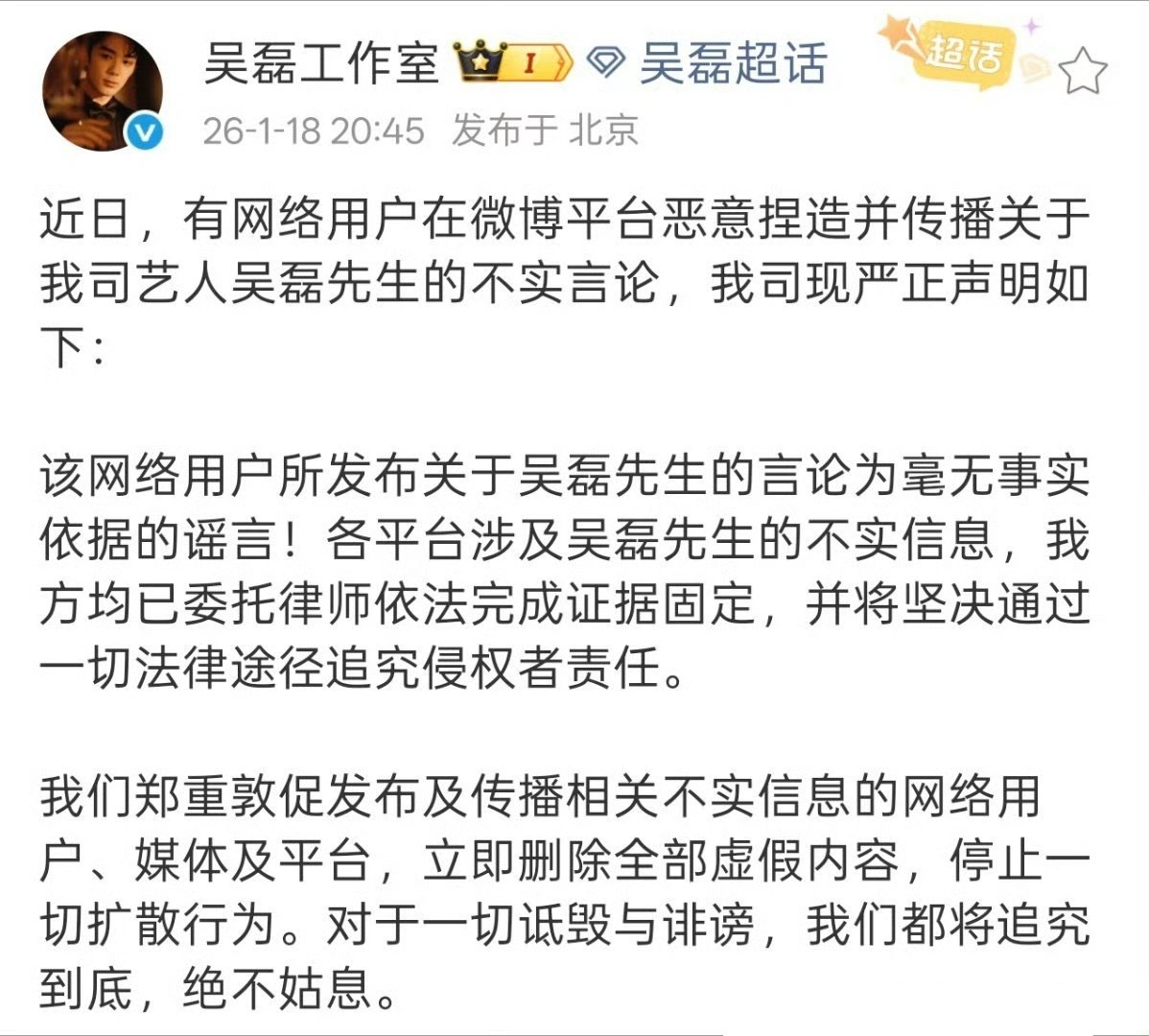 白珊珊 吴磊你欠我的拿什么还吴磊工作室发声明辟谣。