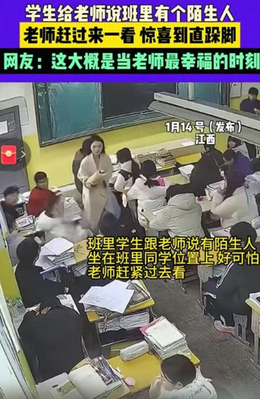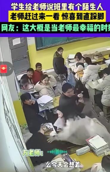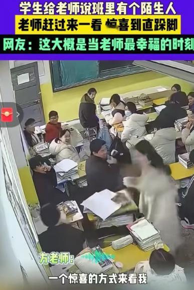 破防了!江西一教室,方老师正准备开始讲课,谁知,竟看到教室内一名陌生人趴在那里睡觉。方老师走上前去想探个究竟,没想到,当陌生人抬起头的那一刻,她竟然高兴的跳了起来。网友:“这大概做老师最欣慰的一件事吧!” 江西上饶市信州区私立新知学校的教室里,方老师的脚步突然顿住了。 她刚轻轻拍了拍那个趴桌的陌生身影,对方缓缓转头的瞬间,她眼里的疑惑便被震惊填满,下一秒就忍不住在原地直跺小碎步,嘴角扬得老高,全然没了课堂上的沉稳模样。 周围的学生们都看傻了眼,没人见过老师这般雀跃失态。 这个被大家当成“不速之客”的人,压根不是外来者,而是方老师上一届教过的学生严子默,这场看似意外的相遇,是他精心策划了许久的惊喜。 没人能料到,这场惊喜的源头,只是一句随口的感慨。 2025年10月18日,方老师整理旧教学资料时,翻出了上一届学生早读的视频,看着画面里熟悉的脸庞,一时触景生情,便把视频发到了昔日的班级群里,顺带提了句“有点想严子默了”。 方老师说过便抛在了脑后,只当是一时兴起的念叨,却被严子默牢牢刻在了心里。 2026年1月中旬寒假伊始,严子默第一时间敲定了回母校的计划,为了让惊喜更足,他特意决定隐瞒行踪,不提前联系方老师。 1月14日上午,学校依旧正常授课,严子默提着包赶到校园,在校门口按规定完成登记,核对学生证信息后进入校内,他避开了可能认识自己的老师和同学,径直走进了方老师现在任教的班级。 他找了个不显眼的后排座位趴下,装作陌生过客,静静等待着方老师的出现。 彼时的方老师刚准备上早读,刚到教室门口就被一名学生匆匆拦住。 学生语气里带着几分慌张,说班里后排趴着个陌生人,一动不动的,大家都不敢上前搭话。 方老师心里顿时犯了嘀咕,学校对教室管理向来严格,外来人员禁止随意出入,她既没接到转校生入校通知,也未同步到访客登记的相关信息,这个突然出现的身影实在反常。 她安抚好报信的学生,轻轻推开教室门走了进去。 教室里早已没了课前的井然,学生们的目光全聚集在那个趴桌身影上,小声的议论声让氛围多了几分躁动。 方老师抬手示意大家安静,脚步放轻,一步步朝着那个身影靠近,生怕惊扰到对方。 考虑到不清楚对方的身份和来意,她没有直接叫醒,只是伸出手轻轻拍了拍那人的后背。 也正是这一下轻微的触碰,让严子默缓缓抬起头、转过脸,喊出一声熟悉的“老师”,才有了方老师激动跺脚的那一幕。 方老师事后坦言,印象里的严子默有些内向,能被他这般记挂,既惊喜又感动,这是身为老师最珍贵的荣耀。 在场的学生随手拍下了这段温馨画面,2026年1月16日11点26分,网友“人淡如菊”将视频上传到网上,没有华丽修饰,却凭着这份纯粹的师生情,快速引发了网友热议。 有人留言感慨,当老师最珍贵的回报从不是学生的成绩,而是被这样放在心上;也有人直言,能记住老师一句随口的话,这份情谊在当下格外难得。 其实这样的暖心瞬间,在生活中并不少见。 现实里,很多人走出校园后,心里都装着对老师的牵挂,却总被各种理由牵绊。 有人觉得自己混得不够好,羞于回校相见;有人被琐事缠身,抽不出时间奔赴;还有人怕时隔太久彼此生疏,让牵挂深埋心底。 但方老师和严子默的故事,恰恰说透了老师的心意。 对他们而言,教书育人的疲惫与琐碎,在学生主动奔赴的那一刻便全部化解,一次突然的探望、一句简单的问候,就足以成为教学生涯里最珍贵的慰藉。 一句无心牵挂,一场跨月奔赴,这场没有跌宕剧情的重逢,藏着最真挚的情感。 原来真正的师生情从不会被时光冲淡,只要放在心上,便是岁月里最动人的温暖。 如果各位看官老爷们已经选择阅读了此文,麻烦您点一下关注,既方便您进行讨论和分享,又能带来不一样的参与感,感谢各位看官老爷们的支持!