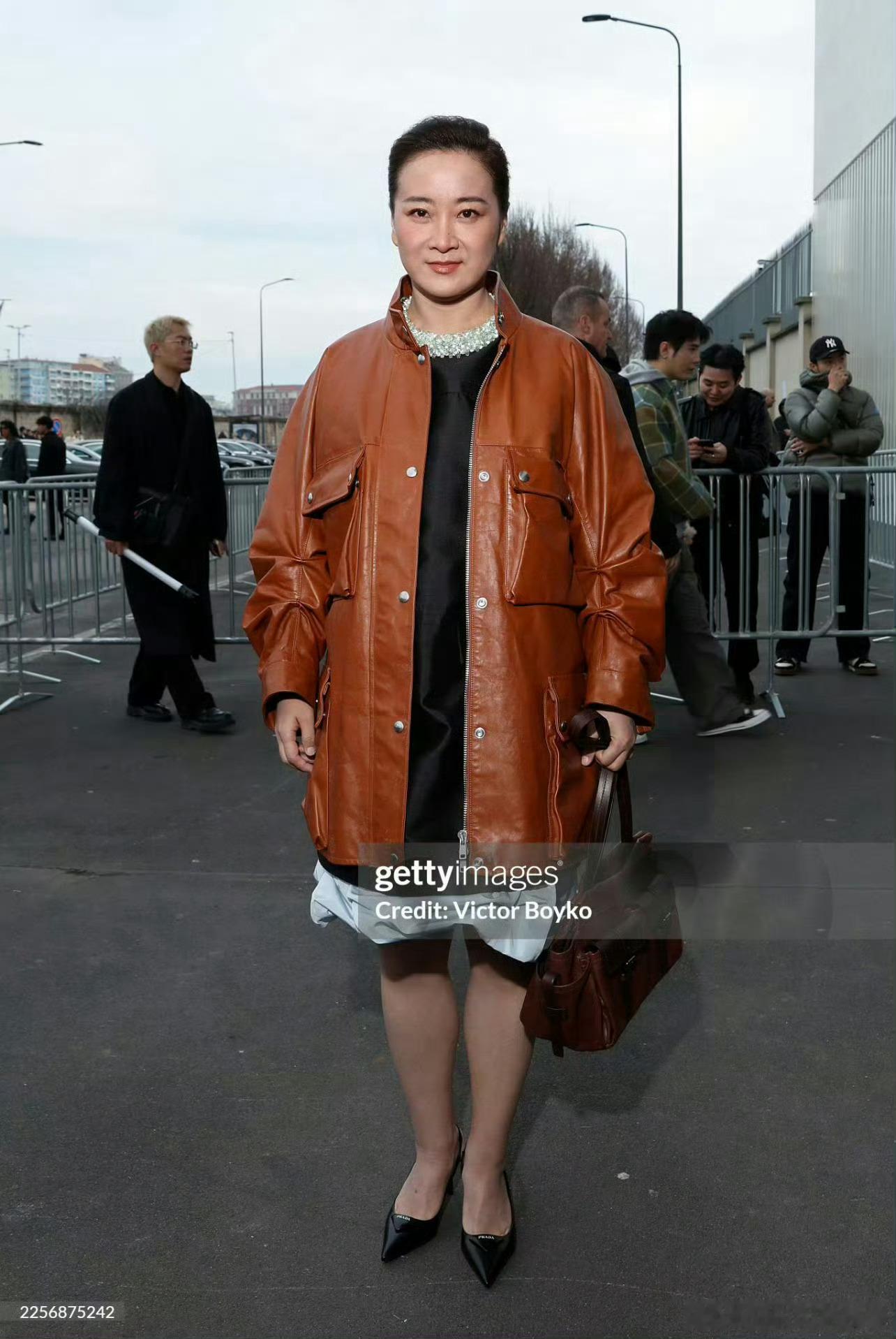 男装周好久不见的贾玲!出发米兰时装周出席Prada大秀,身穿驼毛短夹克撞色尼龙