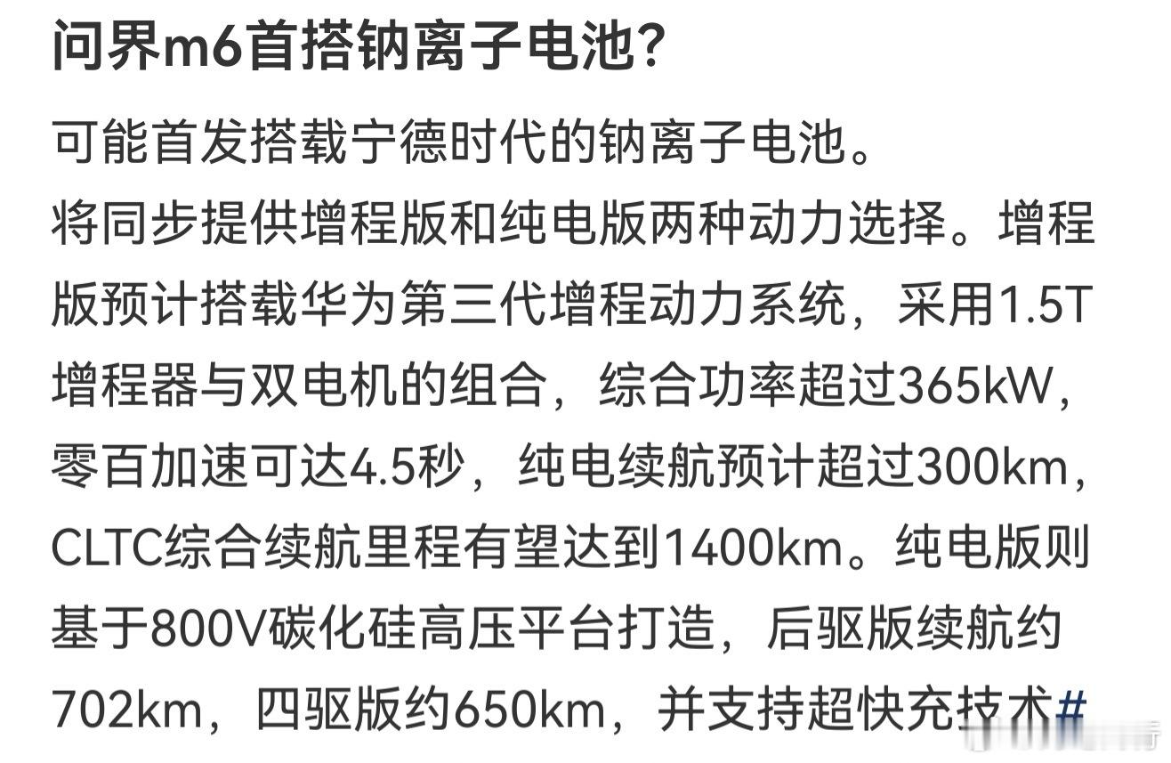 问界M6首发宁德时代钠离子电池?问界汽车鸿蒙智行