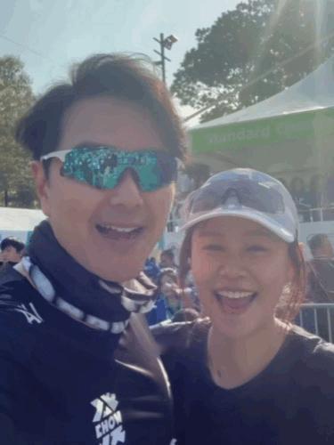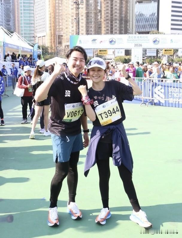 萧正楠、黄翠如这对恩爱夫妻,今天合体出动参加香港马拉松比赛,黄翠如坦言自小身体弱,4年半前跟周润发跑步,她表示自从跑步后,身体慢慢变好,后来还帮助她怀孕。今年黄翠如首次报名参加香港马拉松,原本萧正楠只想抱着儿子来为妈妈做拉拉队,最终改变主意,陪老婆黄翠如一起跑10公里马拉松。