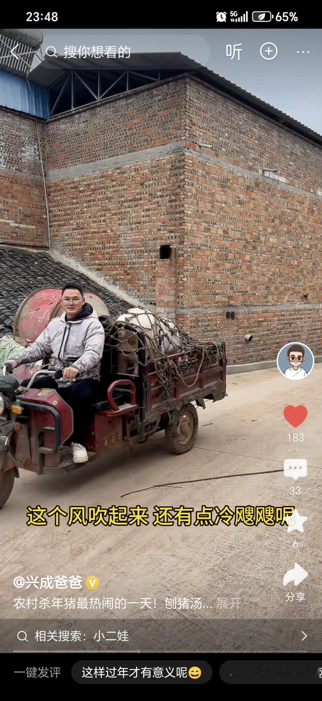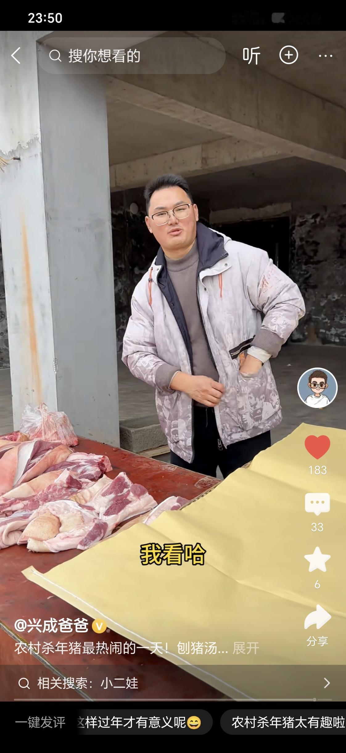 小二娃买猪,拉猪,杀猪,前前后后花了三个小时就把猪儿杀完拆完。[呲牙]幸好他低调一点,没有请太多人来帮忙,只叫了家中的三姑姑家里人来搭把手,不然就像农村四哥和重庆呆呆还在湖南灿灿和四哥亲戚明二锅他们那样,忙得就是接待人了。很似热火朝天,人山人海,但一天下来,主人翁累得只有喘大气的份[呲牙]。 其实大家各家做刨猪汤各有各的各法,只要享受到杀猪菜的快乐就是意义重大了。 其实自己安分守己,静静做自己的事情,享受平静就是心中最大的热闹。小二娃就是这样的,他才不管别人家来多少人,他只管开心地把活干完,让家人享受到他带来的美味就开心。 等到猪肉都变成腊肉以后,过年家人吃饭就真正的人多热闹了。[赞][赞][赞] 乡村小二娃