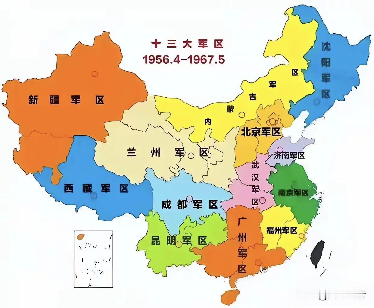 解放军13大军区,首任司令员及军区战略任务 1955年,六大军区调整为12大军区。1956年4月,又增加了福州军区。 1、沈阳军区 驻地:沈阳市。 管辖:辽宁、吉林、黑龙江3省。 首任司令员:邓华上将。 任期:1955年3月至1959年9月。 建国初期,沈阳军区辖16军、23军、38军、39军、40军、46军、50军、64军,共8个军。 2、北京军区 驻地:北京市。 管辖:河北、山西2省,京津地区。 首任司令员:杨成武上将。 任期:1955年4月至1958年9月。 建国初期,北京军区辖21军、24军、63军、65军、66军、69军,共6个军。 3、济南军区 驻地:济南市。 管辖:辖山东省及苏北部分地区。 首任司令员:杨得志上将。 任期:1955年4月至1973年12月。 建国初期,济南军区辖26军、67军,共2个军。 4、南京军区 驻地:南京市。 管辖:辖江苏、浙江、安徽3省。 首任司令员:许世友上将。 任期:1955年4月至1973年12月。 建国初期,南京军区辖12军、20军、27军、60军、68军,共5个军。 5、福州军区 驻地:福州。 管辖:福建、江西2省。 首任司令员:叶飞上将。 任期:1956年4月至1957年10月。 建国初期,福州军区辖28军、31军,共2个军。 6、广州军区 驻地:广州市。 管辖:湖南、广东、广西3省。 首任司令员:黄永胜上将。 任期:1955年4月至1969年。 建国初期,下辖41军、42军、55军,共3个军。 7、武汉军区 驻地:武汉市。 管辖:湖北、河南2省。 首任司令员:陈再道上将。 任期:1955年4月至1967年7月。 建国初期,武汉军区下辖第1军。 8、成都军区 驻地:成都市。 管辖:四川省。 首任司令员:贺炳炎上将。 任期:1955年4月至1960年7月(因病去世)。 建国初期,辖54军。 9、昆明军区 驻地:驻昆明。 管辖:云南、贵州2省。 首任司令员:谢富治上将。 任期:1955年3月至1957年9月。 建国初期,下辖13军、14军2个军。 10、兰州军区 驻地:兰州市。 管辖:陕西、甘肃、青海、宁夏4省区。 首任司令员:张达志中将。 任期:1955年3月至1969年11月。 11、新疆军区 驻地:乌鲁木齐市 管辖:新疆及西藏阿里地区。 首任司令员:王恩茂中将。 任期:1955年3月至1969年。 12、西藏军区 驻地:拉萨市。 管辖:西藏自治区。 首任司令员:张国华中将。 任期:1952年2月至1968年7月。 13、内蒙古军区 驻地:呼和浩特市。 管辖:内蒙古自治区。 首任司令员:乌兰夫上将。 任期:1955年3月至1967年5月。
