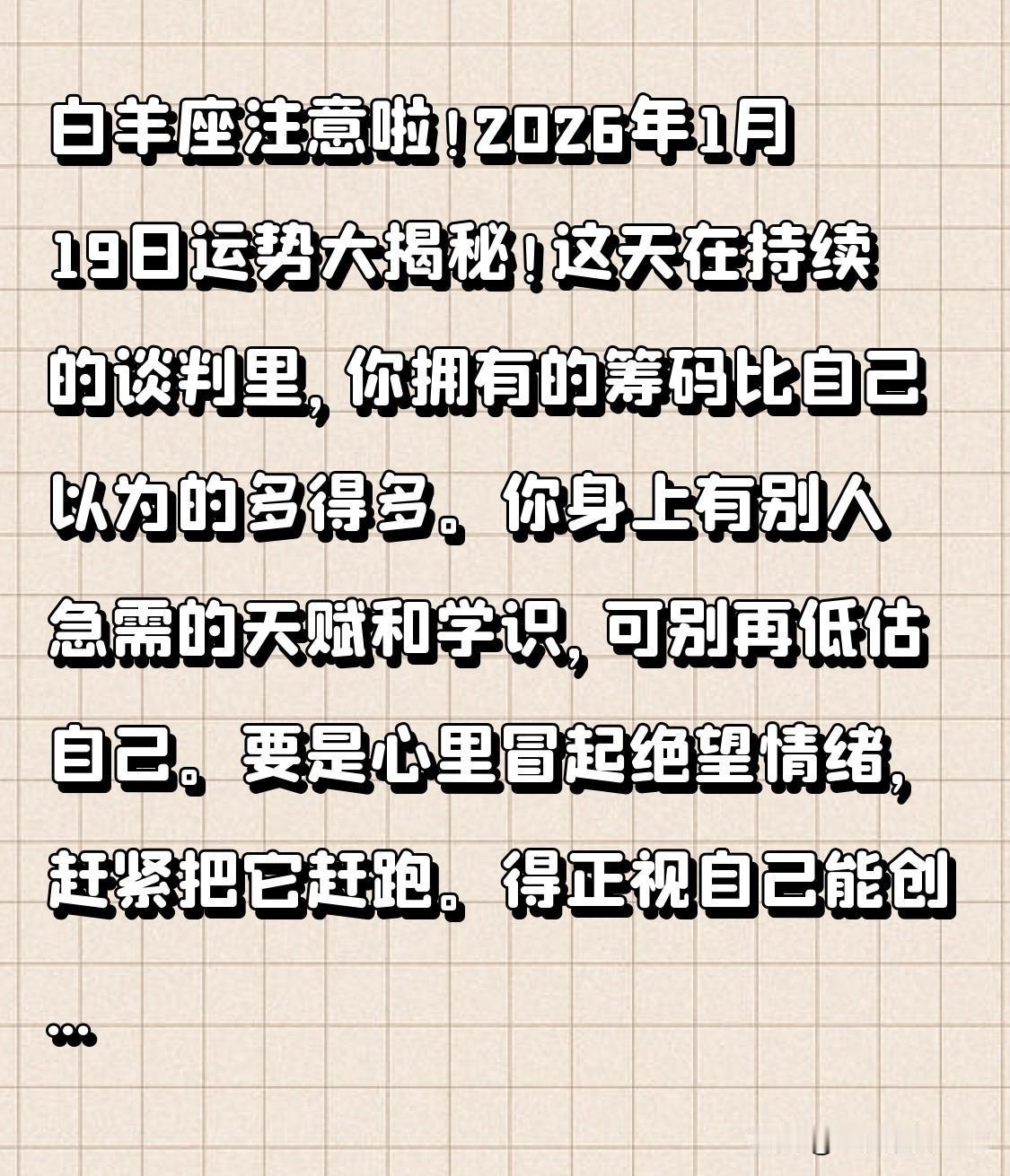 白羊座注意啦!2026年1月19日运势大揭秘! 这天在持续的谈判里,你拥有的筹码