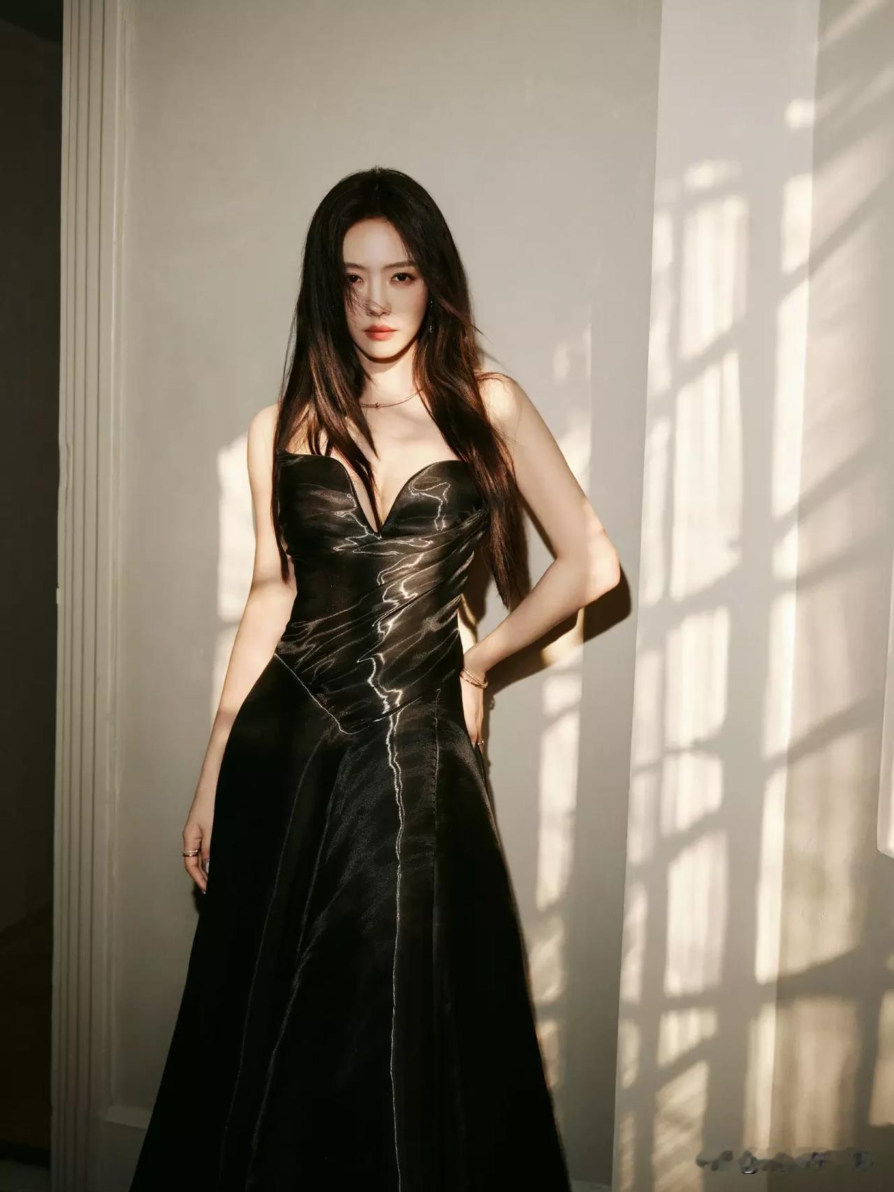 蔡文静这组新造型写真照太吸引眼球了!她身穿黑色抹胸裙站在暖光里,那画面太有氛围感了。暖光一打,她的皮肤白得发光,嫩得能掐出水来,格外透亮。 这黑色抹胸裙也选得恰到好处,把她的好身材展现得淋漓尽致,大长腿更是吸睛,魅力值直接拉满。