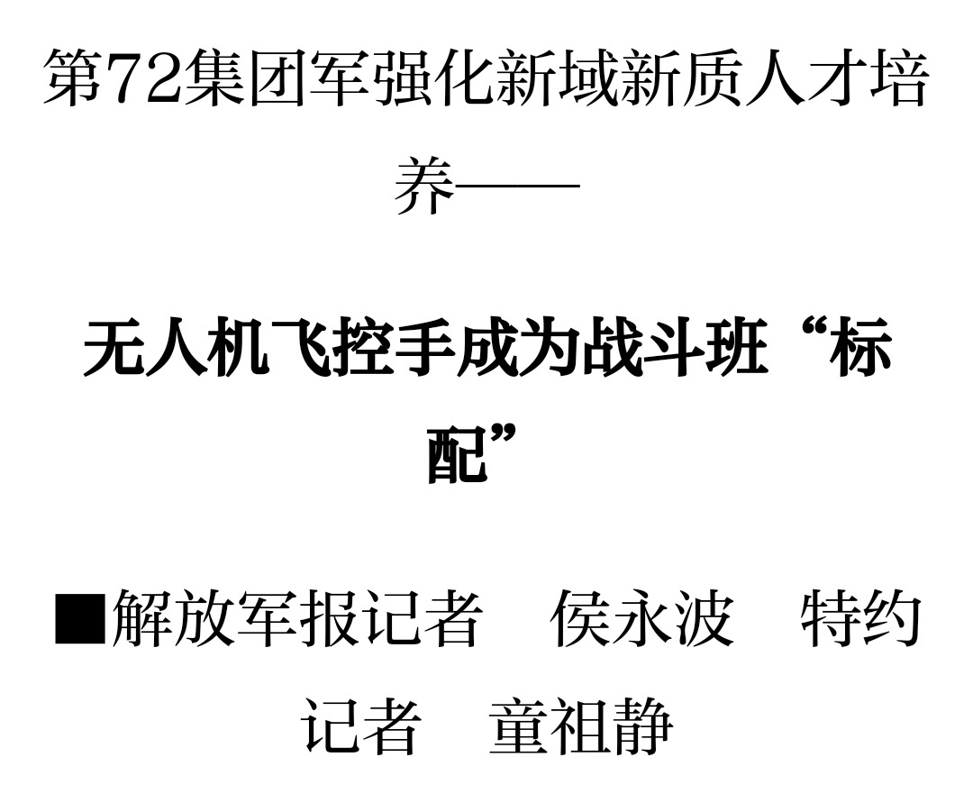 解放军报:无人机飞控手成为战斗班"标配"