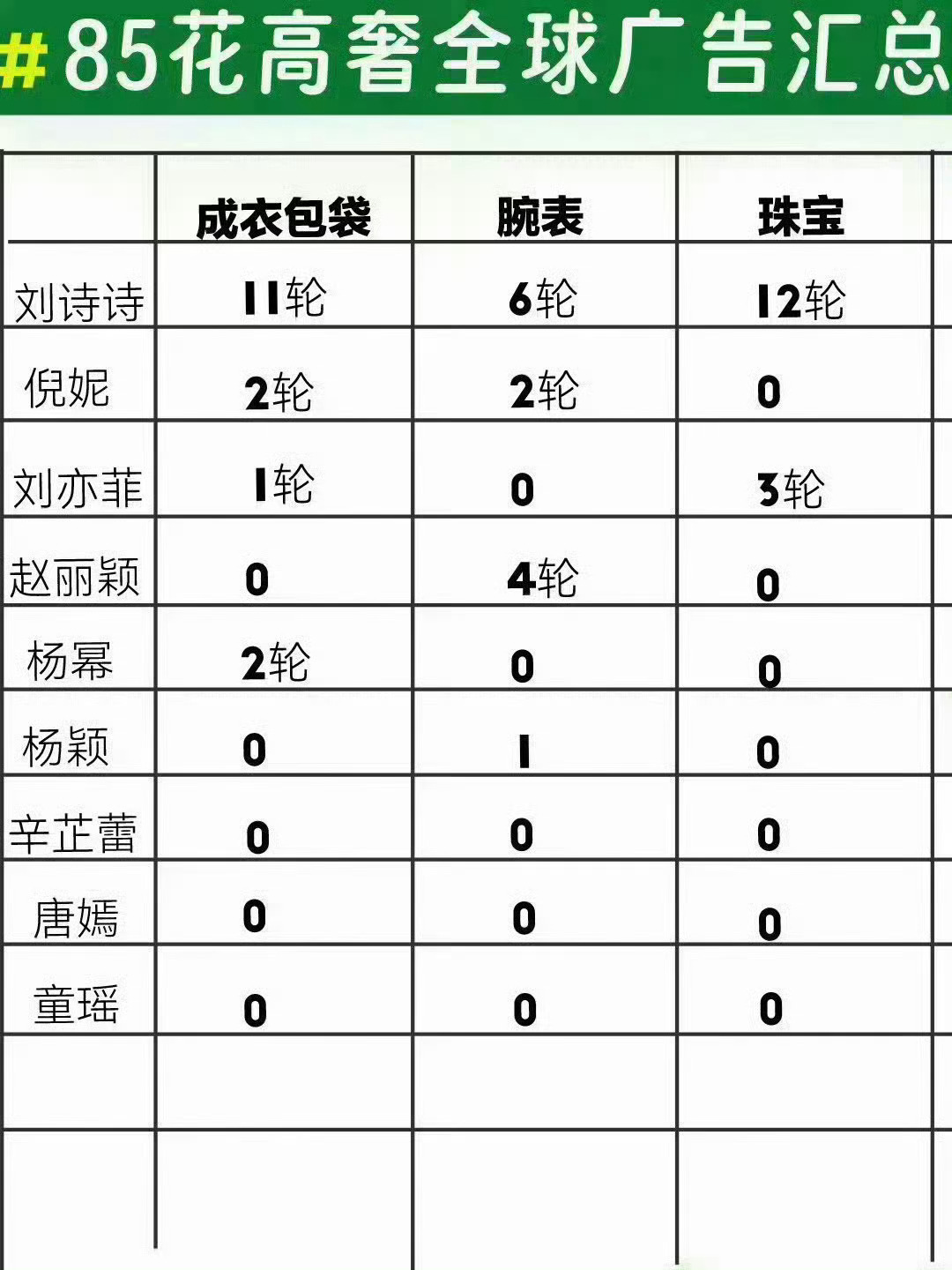 刘诗诗的商业价值就是权威,“奢代➕地广➕主流时尚杂志重要月份”等全方位的顶,85花top