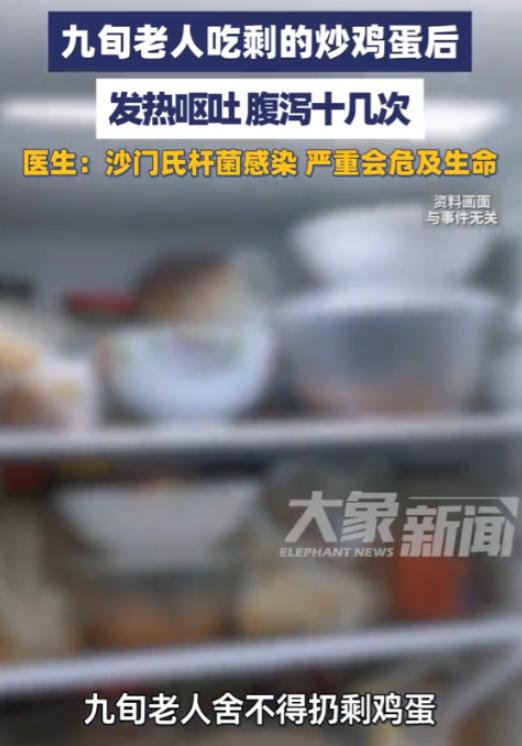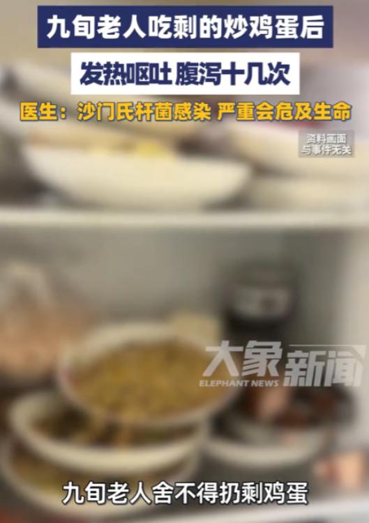 “悲剧还是发生了!”1月14日,河南郑州,一老人由于鸡蛋炒多了便将剩下的放进冰箱里,第二天又拿出来热了一下,没想到吃完后出现发热呕吐症状,甚至腹泻十余次,紧急送医后,医生诊断为沙门氏杆菌感染,警告:严重时会危及生命! 最近,郑州的张大爷因为过于节俭,把自己送进了医院,老人一辈子勤俭惯了,总觉得粮食不能浪费。 这天想着给自己改善伙食,便打了四个鸡蛋,配上葱花姜末,炒了满满一盘金黄喷香的鸡蛋。 一顿饭下来,盘子里还剩小半盘,张大爷看了看,觉得倒了实在可惜,就随手用保鲜膜裹了裹,放进了冰箱的冷藏室,想着第二天热一热继续吃。 第二天中午,张大爷从冰箱里拿出剩鸡蛋,放进微波炉里转了一分多钟,感觉热透了就配着馒头吃了下去。 当时没觉得有任何异常,鸡蛋的味道和昨天相比也没什么变化,老人还念叨着 “一点没浪费,挺好”。 可到了下午三四点,张大爷的身体就出现了问题,先是肚子隐隐作痛,接着一阵一阵的恶心感涌上来,没过多久就忍不住跑到卫生间呕吐起来。 刚开始以为是着凉了,老人喝了点热水想缓解一下,没想到情况越来越糟。 呕吐之后没多久,腹泻就开始了,一开始还是稀便,后来直接变成了水样便,不到两个小时就跑了五六趟卫生间。 更让人揪心的是,老人的体温也开始往上窜,脸颊变得通红,浑身发冷打寒颤,家里的体温计显示已经烧到了 38.9℃。 家人发现情况不对时,张大爷已经因为频繁腹泻呕吐变得浑身无力,说话都没了力气,短短几个小时里,腹泻次数已经超过了十次,整个人蜷缩在沙发上,精神状态差到了极点。 张大爷的家人表示“当时可吓坏了,老人本来年纪就大,这么折腾下来,脸色苍白得吓人,我们赶紧打了 120 急救电话。”  救护车赶到后,赶紧将张大爷送到附近的医院进行抢救,医生接诊后,立刻对老人进行了全面检查。 血常规显示白细胞和中性粒细胞数显著升高,炎症指标也超出正常范围,结合老人的症状和饮食史,医生初步判断为细菌性食物中毒。 随后的大便培养结果印证了这个猜测,张大爷感染的是沙门氏杆菌,这种细菌常见于肉类、蛋类和乳制品中,生存能力极强,在水和食物中能存活数周。 尤其在 20-40℃的 “危险温度带” 里会疯狂繁殖,每 20-30 分钟就能分裂一次。老人吃的剩炒鸡蛋,很可能就是在储存或加热环节出了问题,让细菌有了可乘之机。 剩菜在室温下存放超过两小时就容易滋生细菌,张大爷可能是炒好鸡蛋后,没有及时密封冷藏,让鸡蛋在室温下停留过久。 而且冰箱并不是 “保险箱”,如果储存时没有密封好,生熟食物混放,就容易造成交叉污染,细菌在 4℃以下的冷藏环境中依然能缓慢繁殖。 加热不彻底也是关键问题,沙门氏杆菌需要在中心温度达到 70℃以上并维持一定时间才能被杀死,微波炉加热容易出现冷热点,可能部分区域的细菌没有被完全灭活,这也是导致感染的重要原因。 沙门氏杆菌感染的潜伏期一般在 6 到 24 小时,起病急,典型症状就是发热、恶心、呕吐、腹痛和水样腹泻,严重时会出现脱水、电解质紊乱,甚至引发败血症、休克,死亡率可达 10%。 张大爷因为腹泻呕吐次数过多,已经出现了轻度脱水的迹象,好在送医及时,经过抗感染、补液纠正电解质紊乱等对症治疗后,病情才逐渐稳定下来。 像张大爷这样因为吃剩菜引发食物中毒的案例并不少见,尤其是在中老年人群中,很多人都有勤俭节约的习惯,不愿意浪费食物,却忽略了食品安全的风险。 去年山东济南也有个八旬老人,因为吃了隔夜的剩饺子,感染沙门氏杆菌住进了医院,还有广东佛山的一个三岁小孩,吃了没煮熟的溏心蛋,上吐下泻了好几天。 日常生活中,看似不起眼的饮食细节,背后可能隐藏着巨大的健康风险。尤其是对于老年人等特殊人群,身体机能相对较弱,对细菌的抵抗力不如年轻人,更需要在饮食上多加留意。 合理备餐、科学储存、彻底加热,这些简单的操作就能有效降低食物中毒的风险,让餐桌上的美味既安全又安心。 对于这件事,您有什么想说的吗?欢迎评论区留言讨论。 信源:大象新闻2026-01-14——《九旬老人剩鸡蛋舍不得扔,食用后发热恶心呕吐紧急送医》