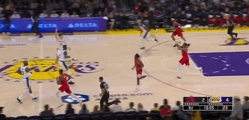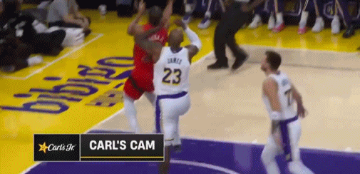追身大帽!詹姆斯这一招真无解! 在今天NBA常规赛湖人对阵猛龙的第一节比赛初,阿巴基反击接球后欲完成上篮得分,詹姆斯高高跃起送上钉板大帽! 得益于超强的身体素质,在追身大帽这块,詹姆斯绝对遥遥领先于其他人!