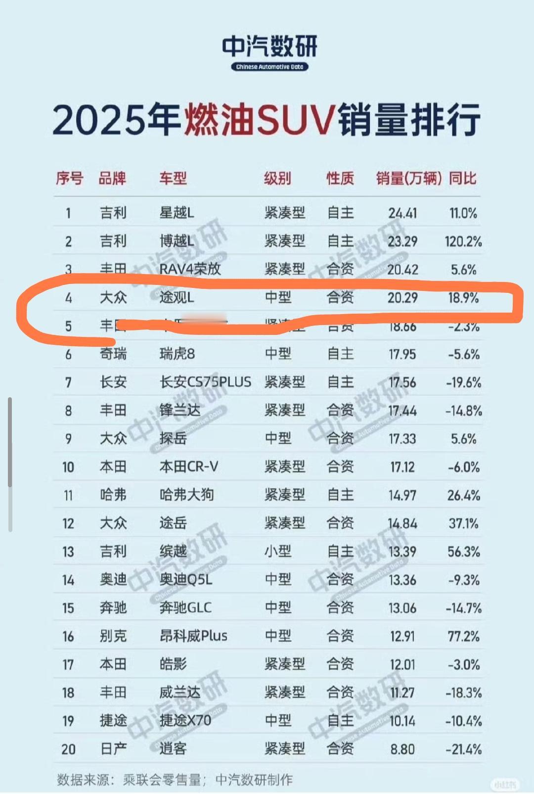 没想到途观和凯美瑞还这么畅销,燃油的途观同比增长19%,更没想到燃油的凯美瑞同比大增32%,很好奇这年头究竟是什么人这么怀旧,这些人买油车的心理动机是什么?买大众买丰田是面子还是里子?