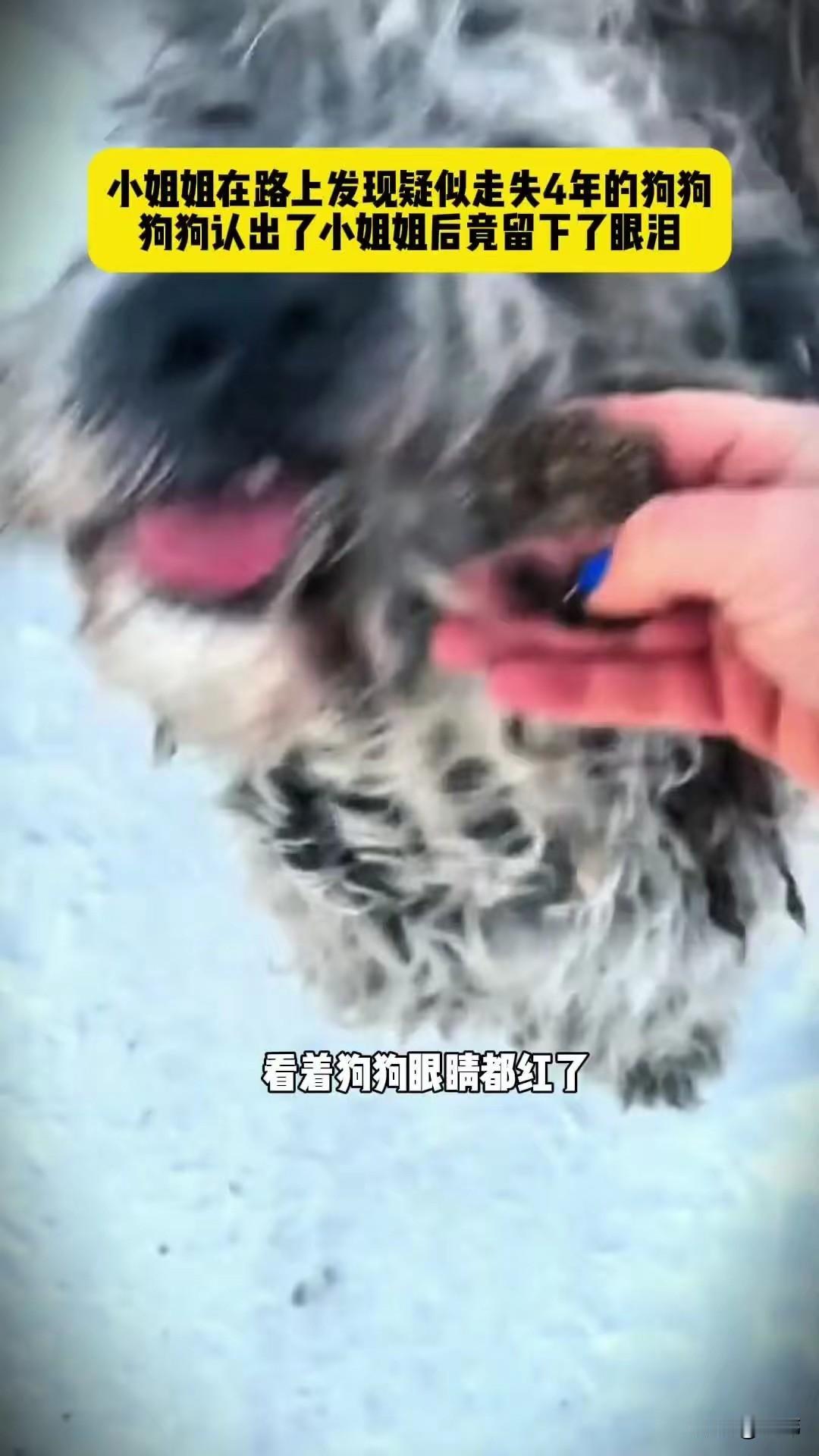 泪目了!一位小姐姐养了一只狗狗,一直对它疼爱有加,非常照顾它,狗狗也特别依赖它,可后来有一次狗狗突然失踪了,小姐姐找了很久都没有音讯。 四年后的一天,小姐姐去观赏雪景,当她开车行驶到一条小路上的时候,看到了一只流浪狗狗非常像她四年前丢失的狗狗,于是她赶紧停车下去查看,发现就是她的狗狗,于是试着喊出了狗狗的名字,狗狗听到了她的呼叫,直接泪流满面的跑了过来,小姐姐喜极而泣,轻轻地抚摸了狗狗,然后紧紧抱住了它。 太不容易了,分别了四年,它们居然能够再次重逢,之后小姐姐把它带回去好生照顾,相信在她的照顾下,狗狗会越来越好的,他们也会更加珍惜这来自不已的重逢。