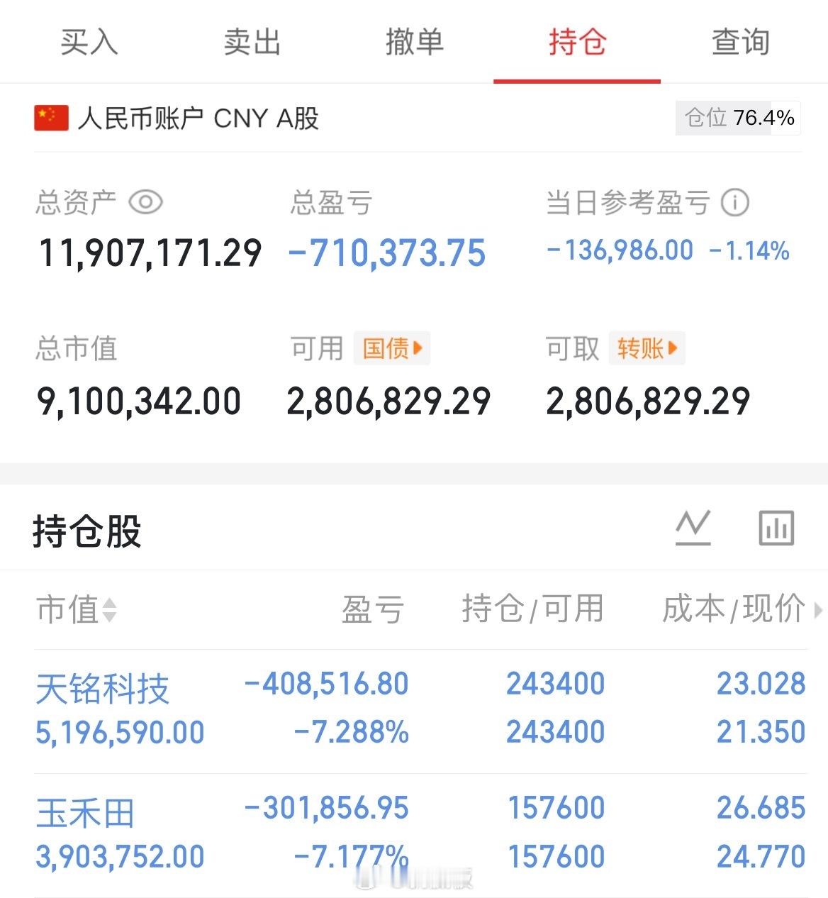 1月19日 早盘1000万勇闯大A记 !目标2026赚它一个亿!!第(15)天今日情况:-13万持: 天铭 玉禾机遇与挑战并存,希望能创造奇迹,更到数倍那天。特别声明:本文仅是个人观点及操作不构成投资建议,仅供参考