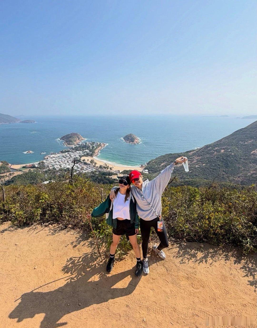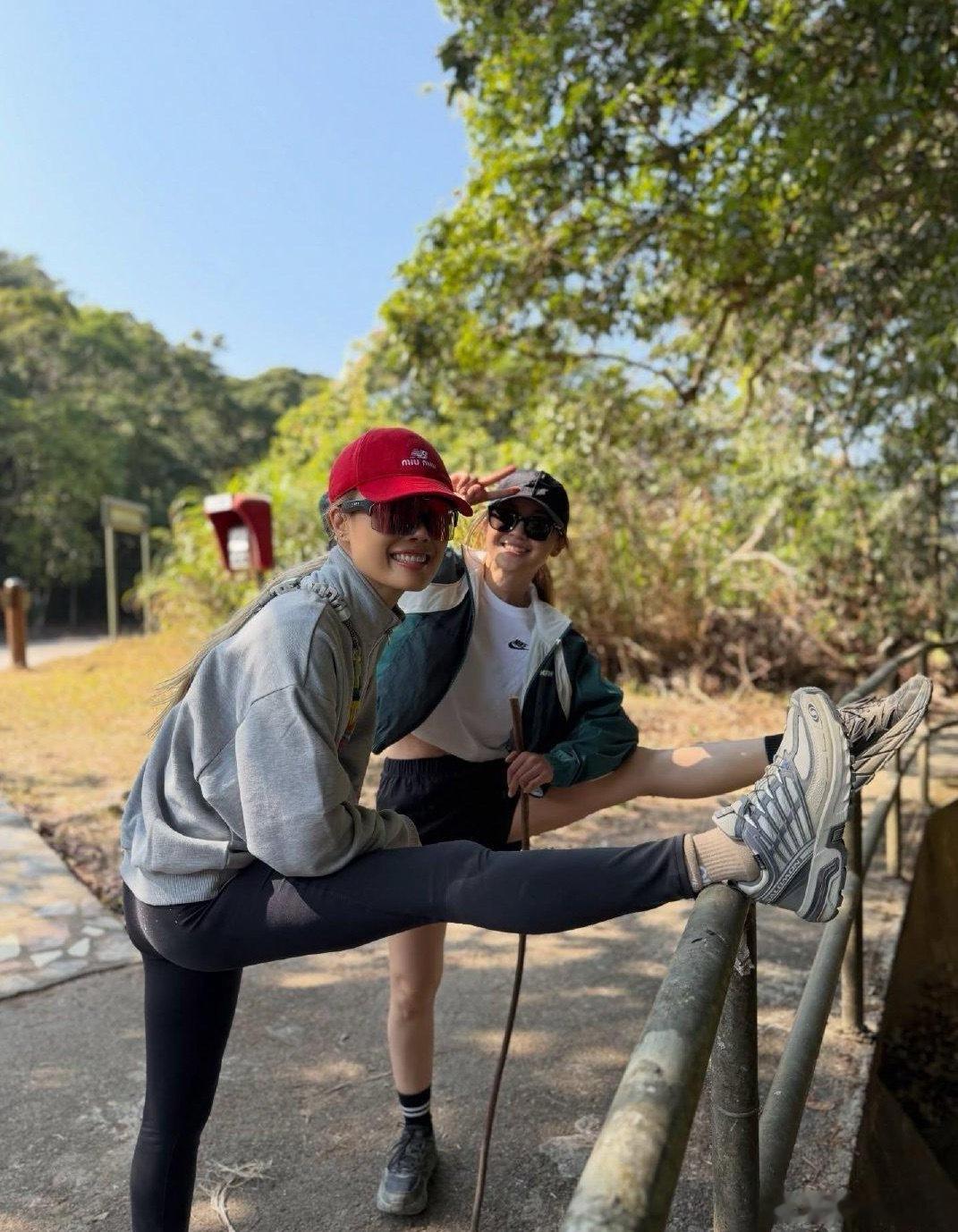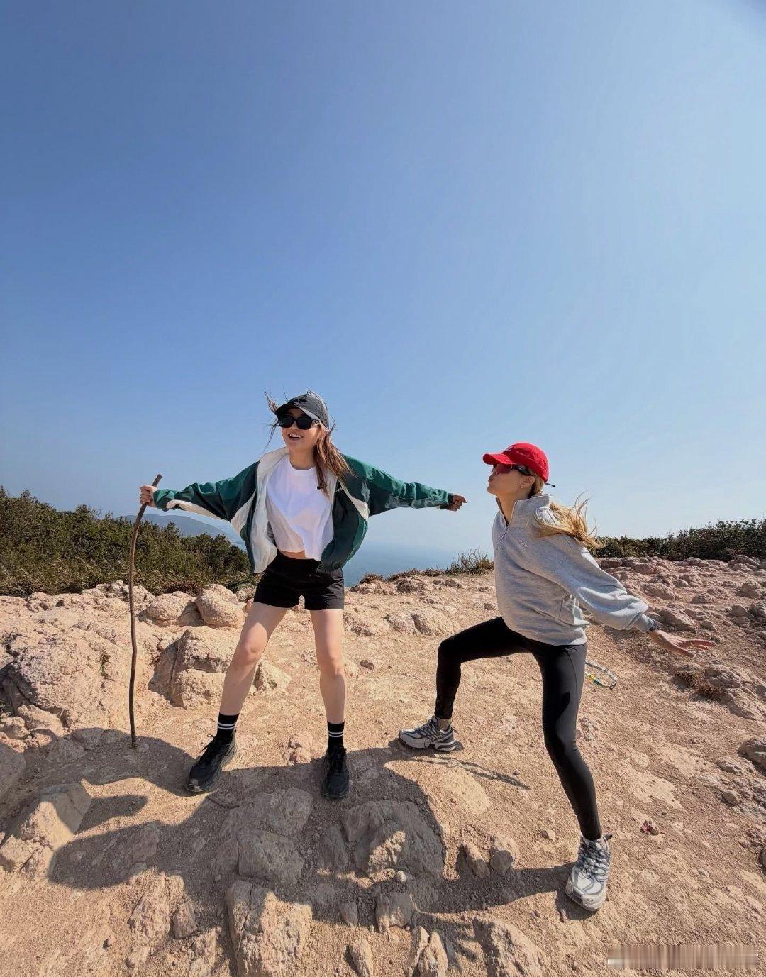 容祖儿和阿Sa一起出去爬山,两个人看起来都好年轻啊!完全看不出她们都已经年过40岁了。香港人都好喜欢爬山,难怪这么抗老!