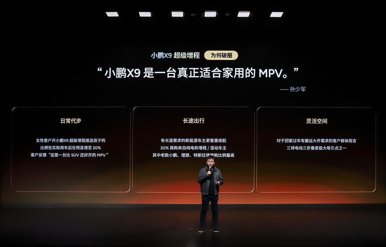 刚刚结束的小鹏X9分享交流会上,公布了2025年12月,小鹏X9累计交付5424台,同比增长289.1%,环比增长67.7%,刷新单月历史交付纪录,并创下12月高端MPV个人用户交付量第一、12月印尼纯电MPV销量冠军以及2025年下半年香港MPV销量冠军。 小鹏X9超级增程星舰2.0设计拒绝油腻“老登”形象,逐渐成为年轻家庭中的第一台大车。90后车主占比57.2%,其中00后占比13.7%,首购用户占比高达21%,8成增换购来自豪华品牌。不仅是家庭选购,它也是时尚圈的新晋潮流单品,很多明星艺人也把它当作自己的专属座驾。 此外,女性用户的占比高达22%,主动式后轮转向,支持双向±5°的最大转角,女性驾驶依旧灵活好开。储物空间足够多变,再结合第三排座椅电动折叠,一键就能开启多种生活方式。 小鹏X9超级增程,把电动汽车的“北方禁区”成功打破。1602km综合续航,452km纯电续航,终结了你对续航的焦虑。冰雪稳行系统,具备雪地、脱困模式,满足了北方用户“冰雪路面不打滑、积雪泥泞可脱困”的实际用车需求。 今年春运,小鹏X9超级增程推出“移动充电站”公益合伙人计划,目前已有1000位小鹏X9先锋车主加入,用户可在春运路上使用V2V车对车充电,随时为电量告急的车辆补能。同时,天玑AI OS 6.0将于1月20日开启首批推送,首批搭载车型就包括小鹏X9超级增程。【来自懂车帝车友圈】