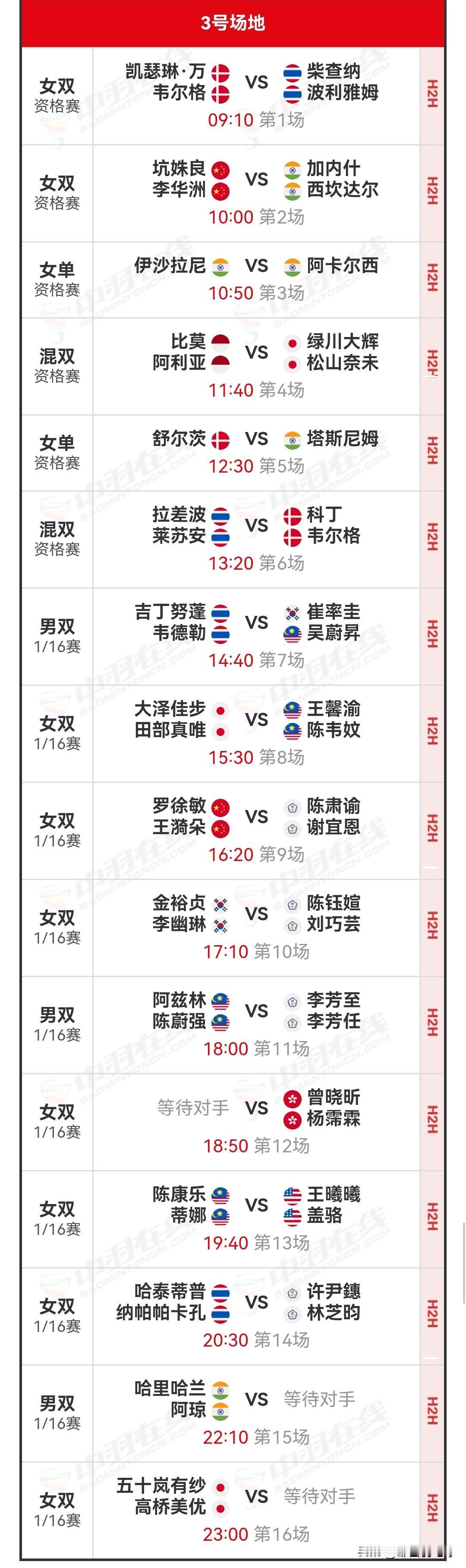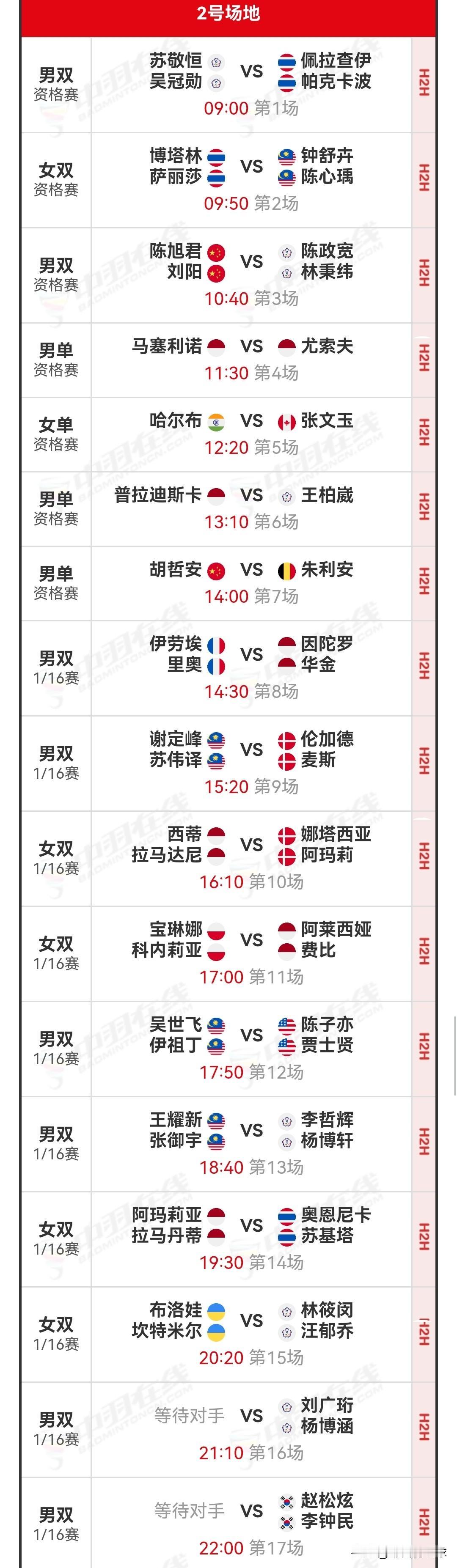 1月20日印尼羽毛球大师赛首日赛程安排 明日,超级500级别的2026年印尼羽毛球大师赛将在印尼首都雅加达正式打响。 明日北京时间09:00,资格赛将率先开启;14:30,1/16决赛(一)也将接踵而至。届时,共有三块场地同时进行比赛,详细对阵安排如下: 羽毛球 羽毛球爱好者 羽球赛程 国羽赛程 羽毛球赛事 羽毛球赛程 羽毛球比赛 羽毛球大师赛