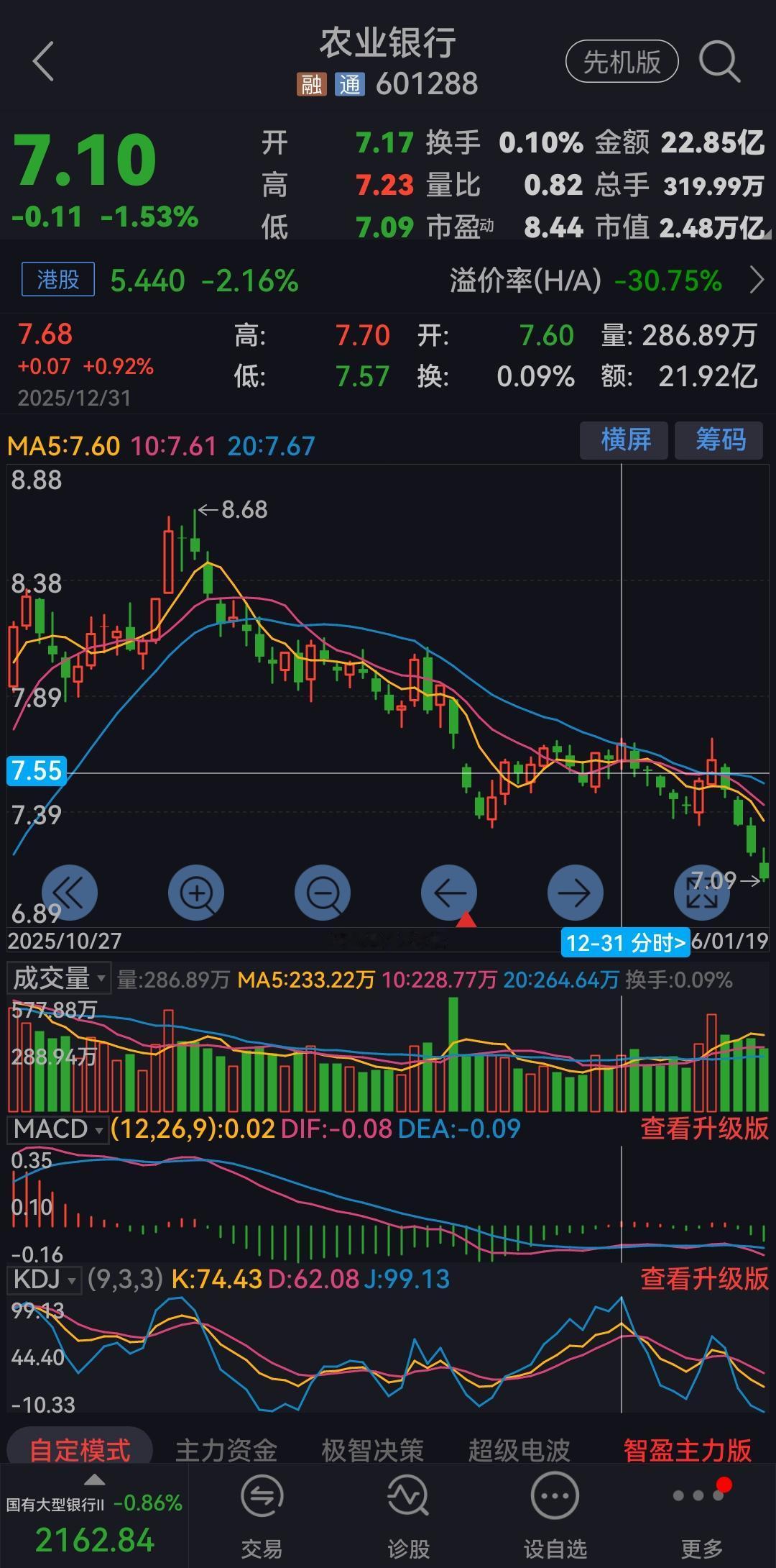 农业银行今天收盘价7.1元,自进入2026年银行股就一直下行,股价跌宕起伏,摇摇晃晃,农业银行也该调整了,不知现在这个价格能买吗?