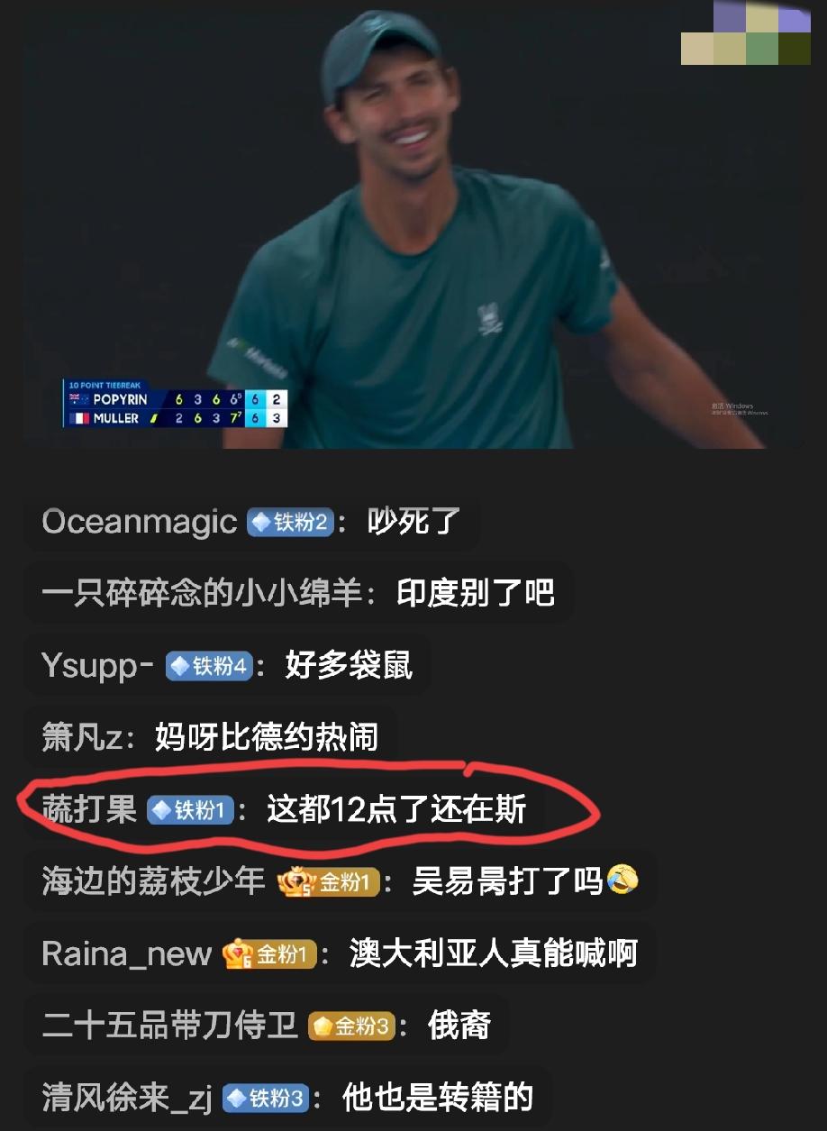 澳大利亚墨尔本。澳网男单首轮本土选手波佩林和法国选手穆勒的一场比赛,双方厮杀到决胜盘的抢十,最终穆勒在抢十大战中以10:4获胜。而此时,当地时间已经来到晚上12点,现场还是座无虚席,因为是本土选手的比赛,观众也是非常的热情。 波佩林据说是俄罗斯裔,这个名字在俄罗斯人里面应该很少见。再看他的对手穆勒,乍看还以为是德国球员,谁知居然是法国的。不得不说,现在看球员名字猜国籍真的很难猜了,不像以前,看到名字,就能猜出个十之八九。
