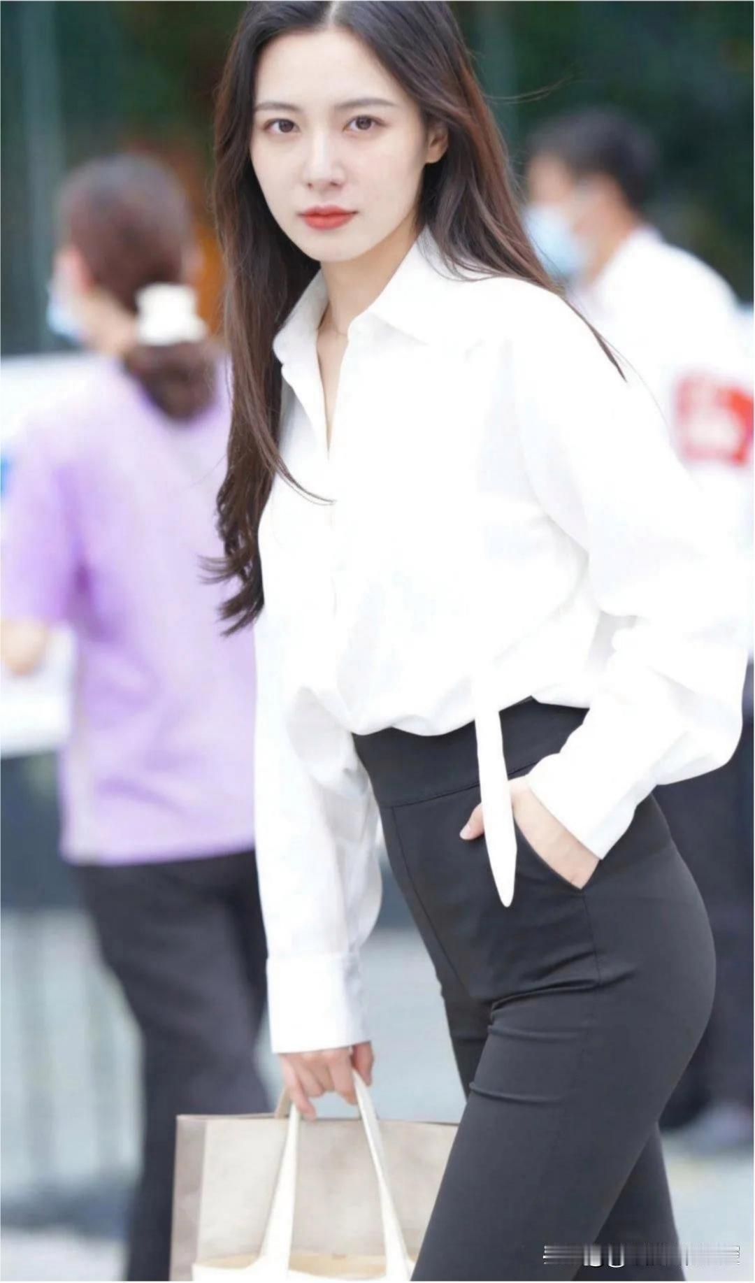 都市雅致风,白衬衫配黑裤简直yyds!以前总觉得白衬衫难穿,要么像行政岗,要么像偷穿男友衣服。其实关键在质感,买垂坠感强的真丝或高支棉,一件能穿好几年,很划算。 搭配黑裤也有门道。怕显腿短?试试“高腰+短衬衫”,把衬衫塞进裤腰,解开上面两颗扣子,腰线瞬间提高,腿长两米既视感。阔腿裤裤长要刚好盖过鞋跟,细节很重要。 职业女性夏天穿这搭配也超合适,基础款白衬衫,三角领干练,一字领增添性感。面料选真丝或雪纺,舒适又高级。再搭双细跟裸靴,气场直接拉满!