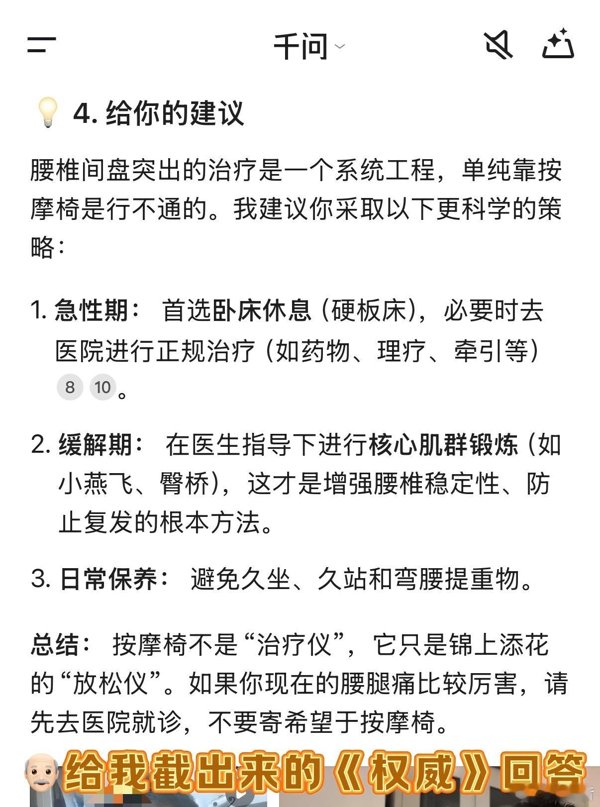 谁能想到!给我爸装千问放主屏,他直接把AI当健康导师,上来就否定我买的按摩仪:“这玩意儿治不了腰突,AI说要练核心”,然后就去研究计划,消息都不回,我在工位凌乱,算了,锻炼总比躺平追剧强~老一辈迎来了他们最严厉的老师