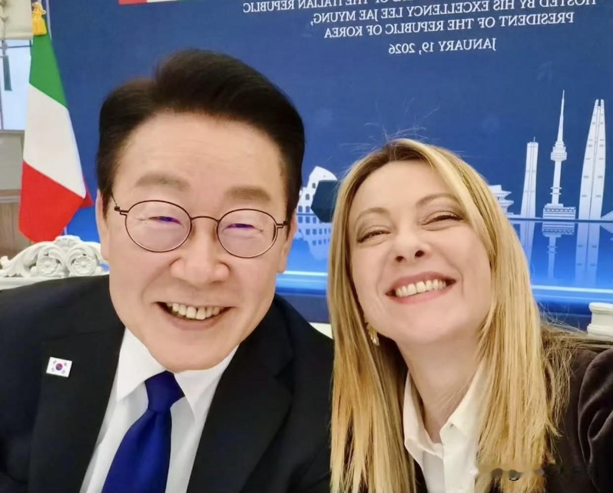 韩国总统李在明与意大利总理梅洛尼自拍照