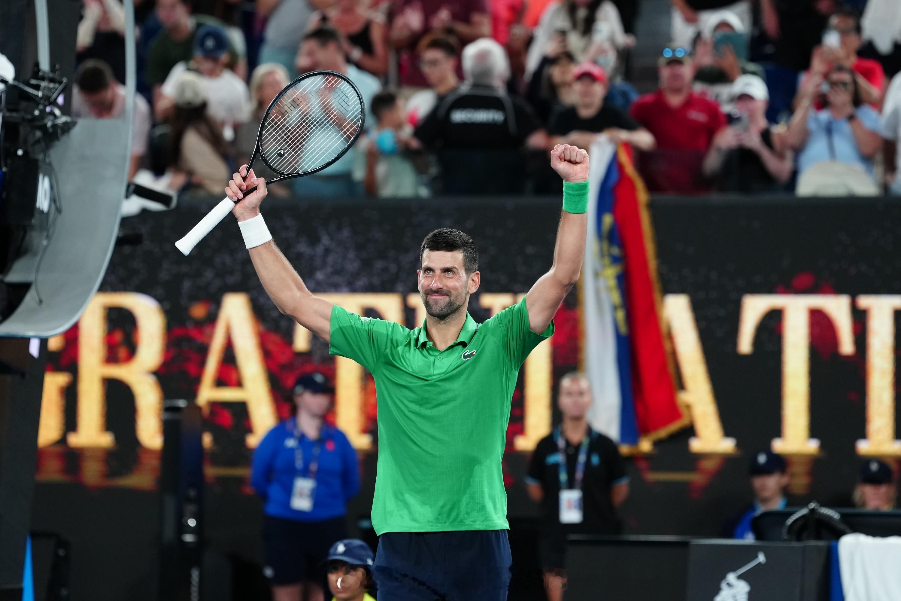 澳网2026 男单首轮焦点之战,赛会10冠王德约科维奇以6-3/6-2/6-2轻取马丁内兹,晋级第二轮的同时,收获在墨尔本的第100胜。德约科维奇迎澳网开门红德约科维奇澳网100胜