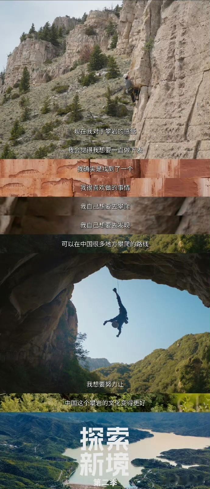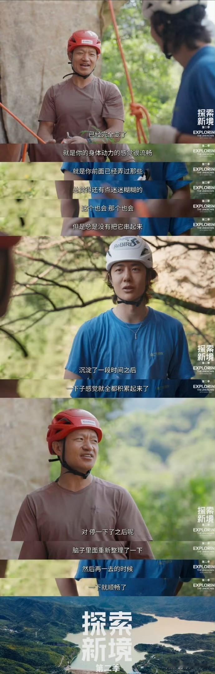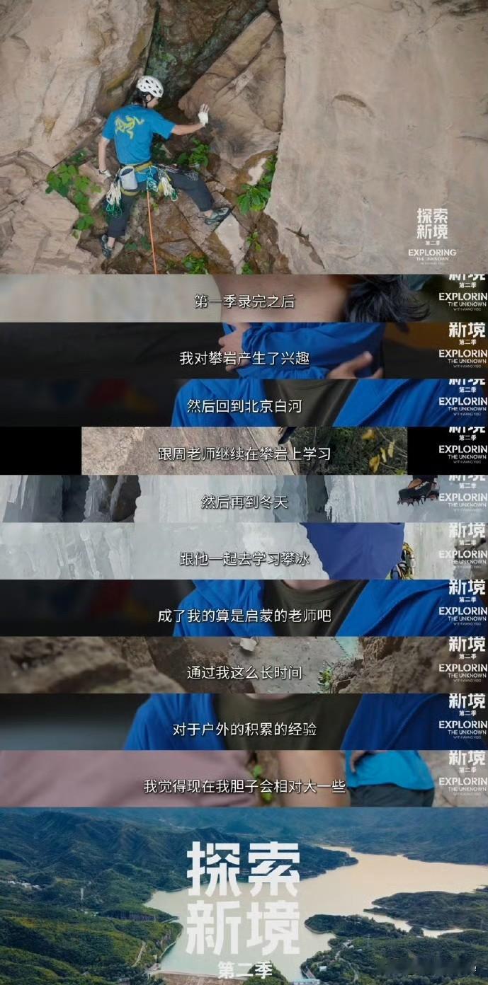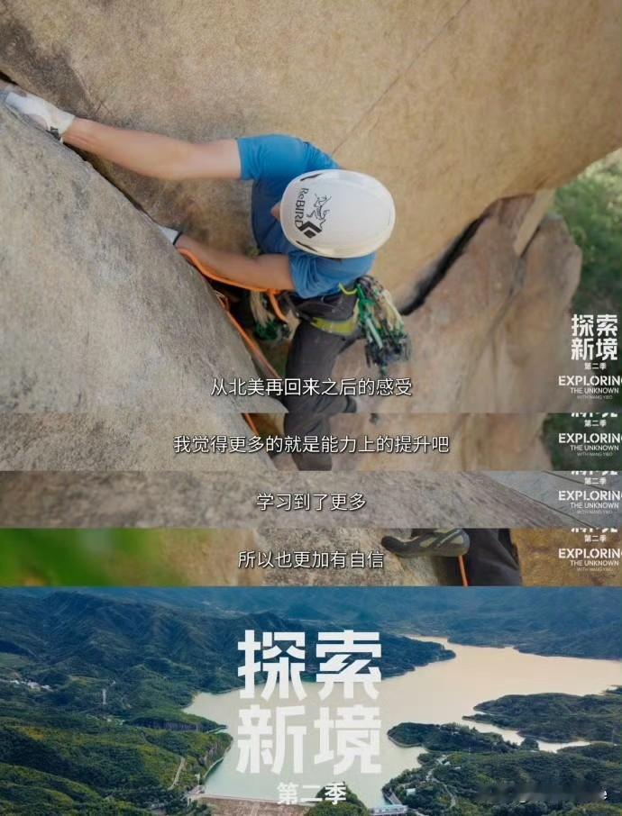 1月19日,王一博探索新境还有第三季! 王一博《探索新境第二季》收官,工作室发文称,“即刻收获探索副本,解锁王一博的攀岩进阶之旅……故事暂落,热爱不止。” 原本看王一博在探索新境中的状态,以为他已经调整好了自己,平衡好了自己的工作状态,没想到,他对户外乐此不疲,还要继续 一方面觉得这也是好事,作为观众,我还挺喜欢这个纪录片的,另一方面又觉得王一博这状态这年纪不去拍戏可惜了,或者去开个演唱会,讲真他唱跳也行! 一直在大自然里晃荡着,总归不是长久之计