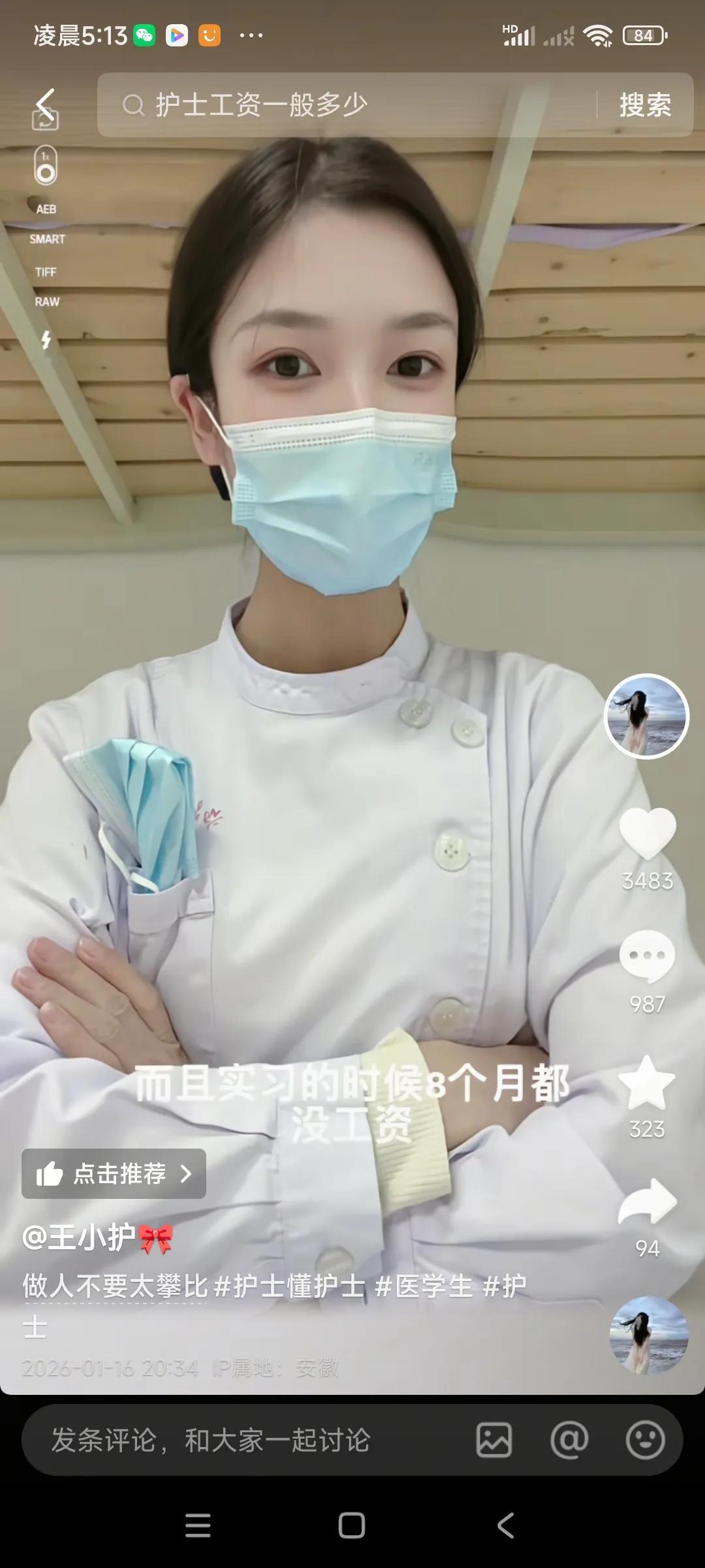 没想到,工作压力不小的护士工资只有2800元,加上200元全勤奖,不算多啊,,, 而且这位小护士说,她实习期有8个月,是没工资的,像以前的小学徒,光干活,不拿钱的,, 也不知道这些是否真的,我一直认为护士一月至少五六千元工资,她们还要值夜班,也不容易,, 可能她在内地县城,工资不高,, 沿海大城市,护士工资七八千左右,比内地高不少,但消费也高,还要租房子,,,