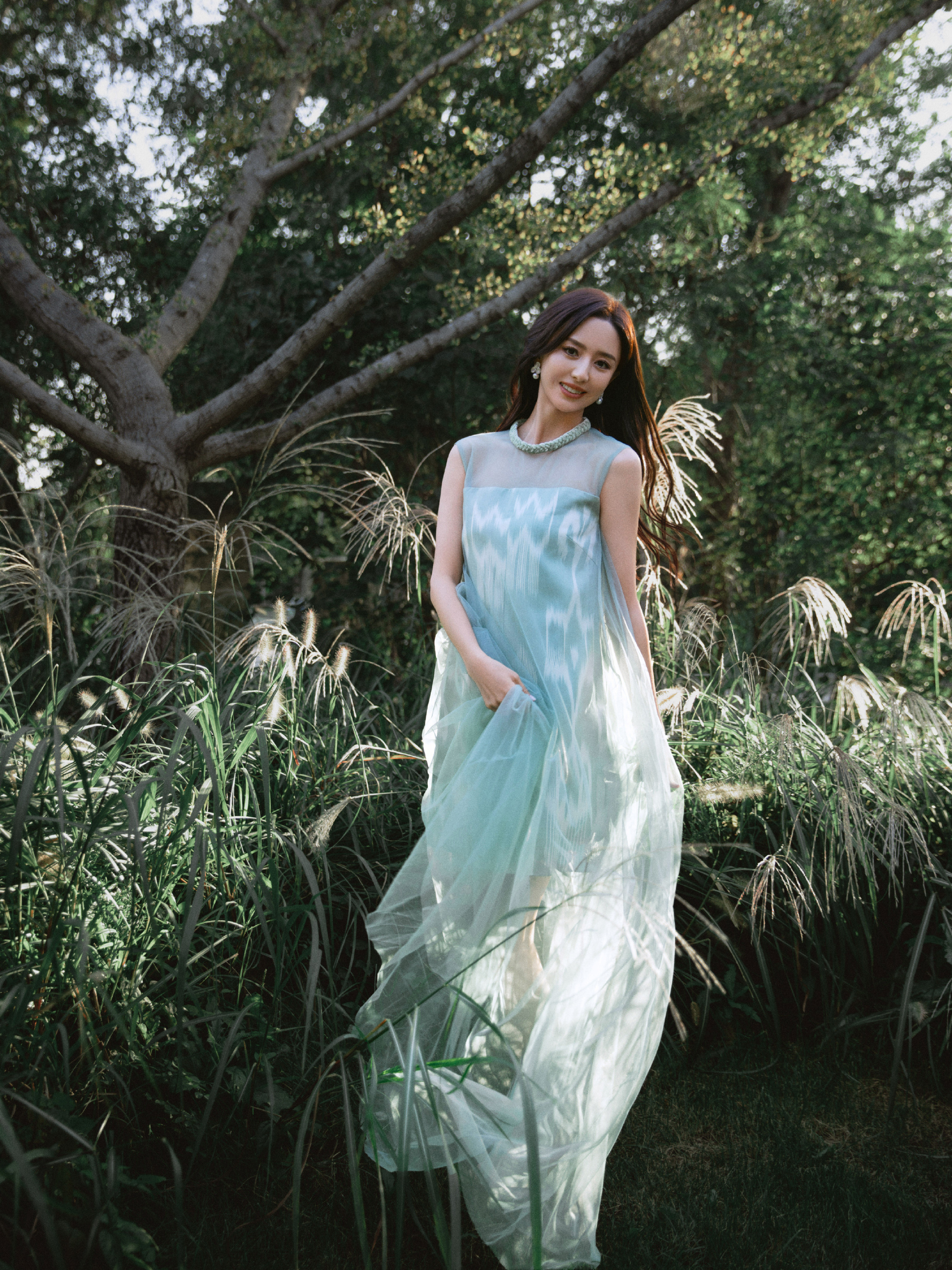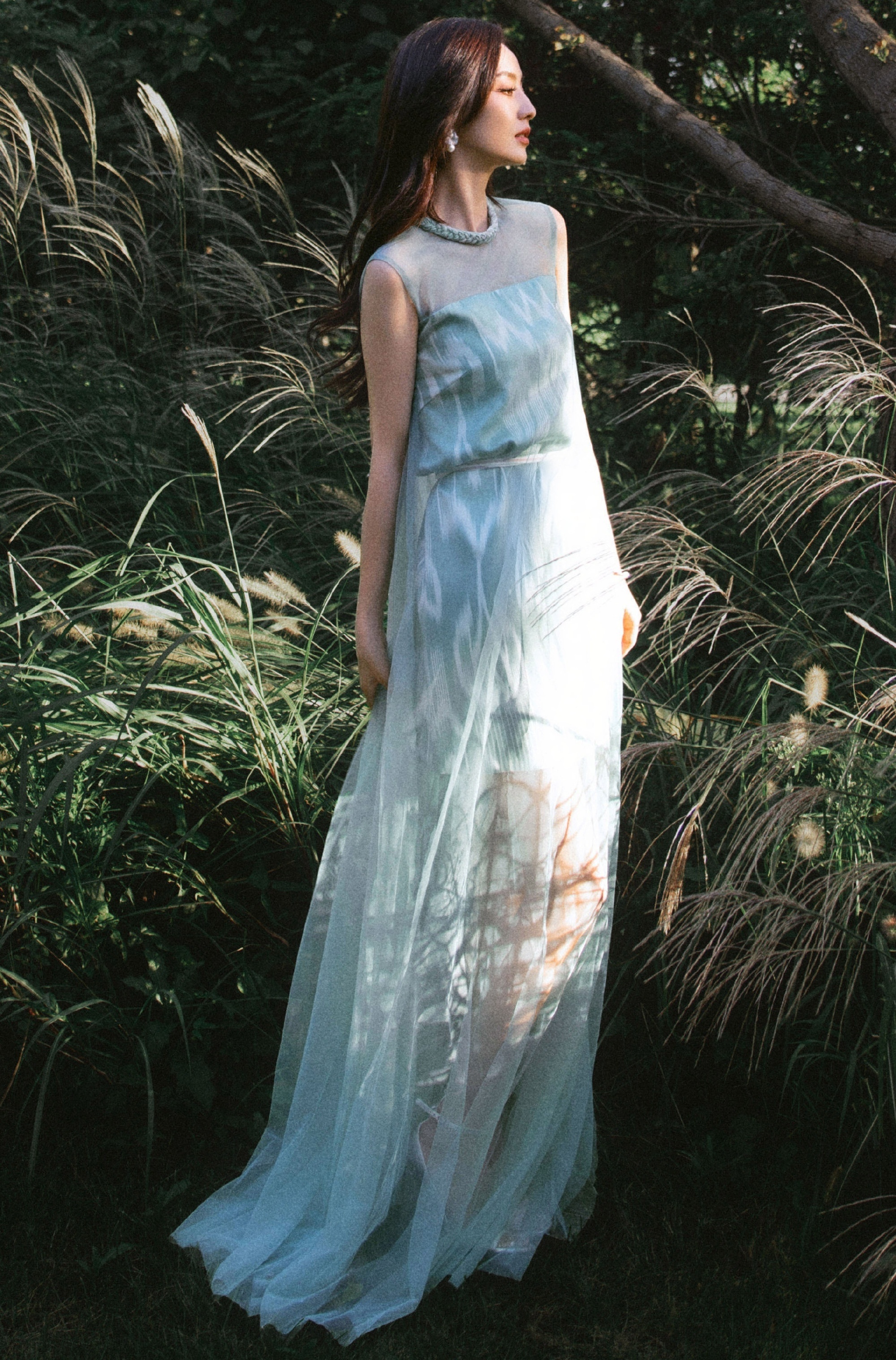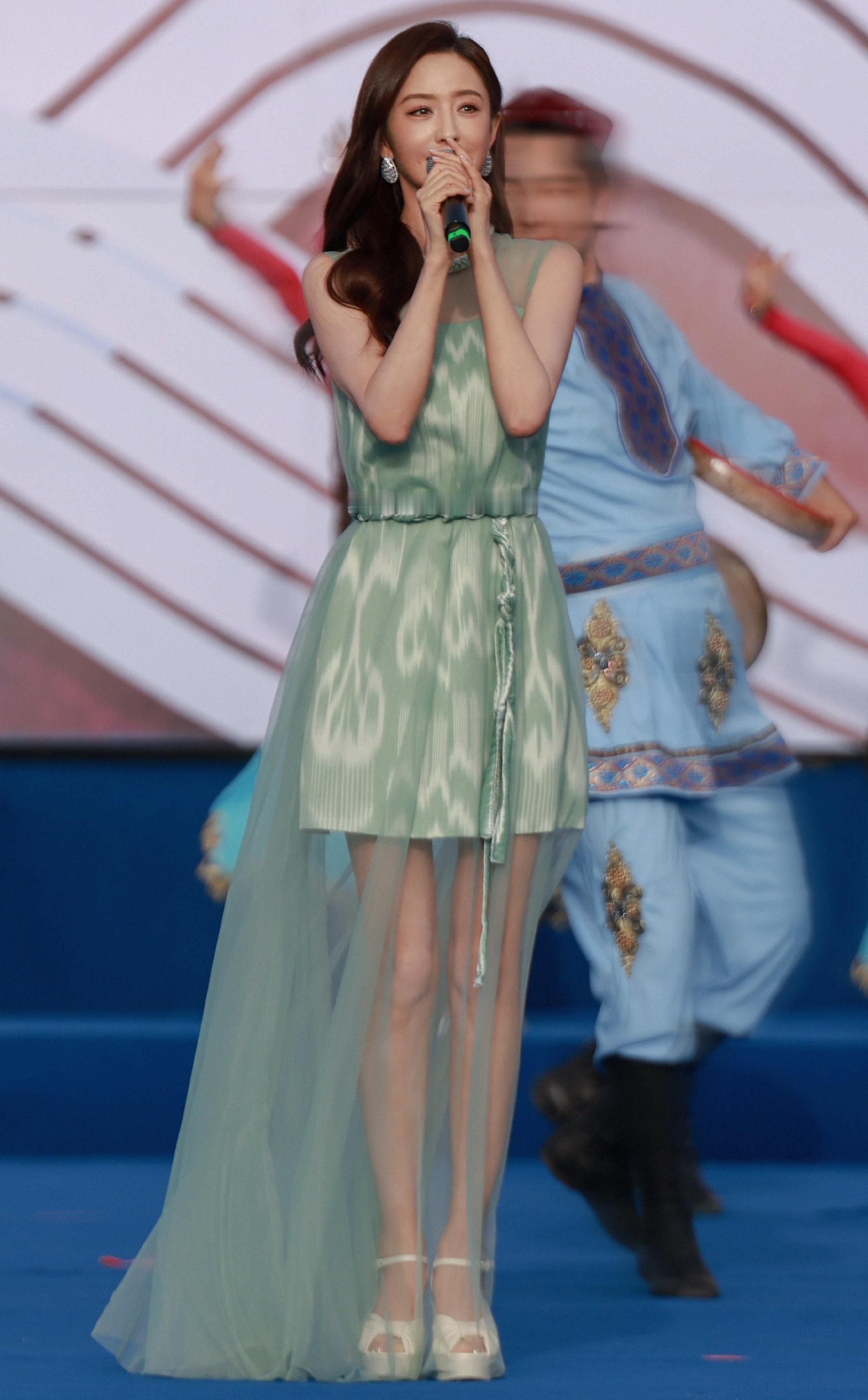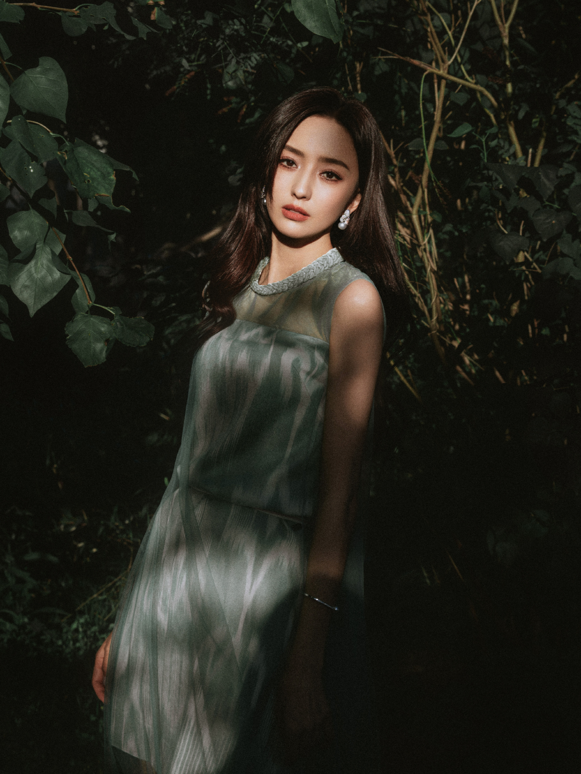 佟丽娅浅绿色纱裙穿搭,柔美优雅的丫丫状态真好。佟丽娅