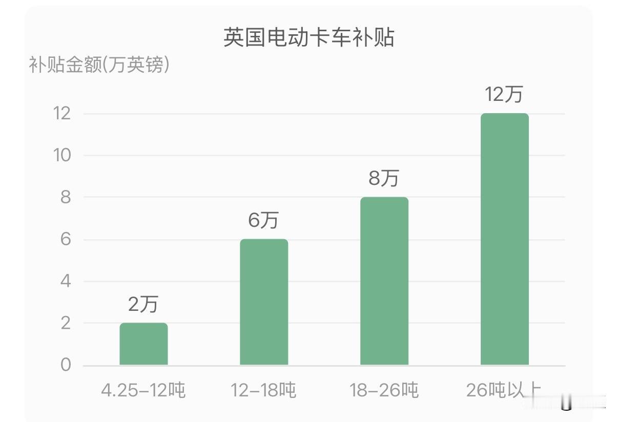 英国电动卡车补贴:最高12万英镑 为加速货运行业脱碳,英国政府近期大幅提升了针对电动卡车的购置补贴力度。这项名为“插电式卡车补贴计划”(Plug-in Truck Grant)的政策,通过提供高达12万英镑的购车折扣,直接降低运输企业的初始投资门槛,目标是到2040年实现重型货车的零排放转型。 这笔高达1800万英镑的额外资金,是英国政府总额3.18亿英镑“绿色货运投资计划”的一部分 。英国航空、海事和脱碳部长基尔·马瑟(Keir Mather)表示,此举旨在支持英国企业绿色转型,降低电动卡车的成本,帮助货运公司实现转型,同时推动该行业的增长、投资和就业。 新能源车补贴