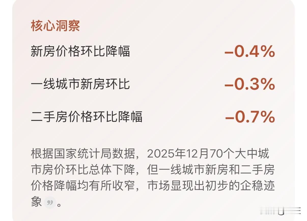 2025年12月全国房价:一线城市降幅收窄,市场现企稳信号 国家统计局于202