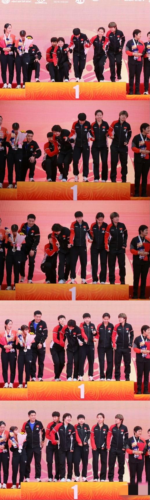 这很符合国乒女队的现状。 莎莎在前面顶着, 博士和大迪也跟着站住了位置。 快慢被莎姐和王姐一推一拉往上走。 现在最幸福的应该是蒯曼,前面两个姐姐像大山一样罩着,自己可以狂狂练球,放开打。 只要心态好,不愁取的好成绩。