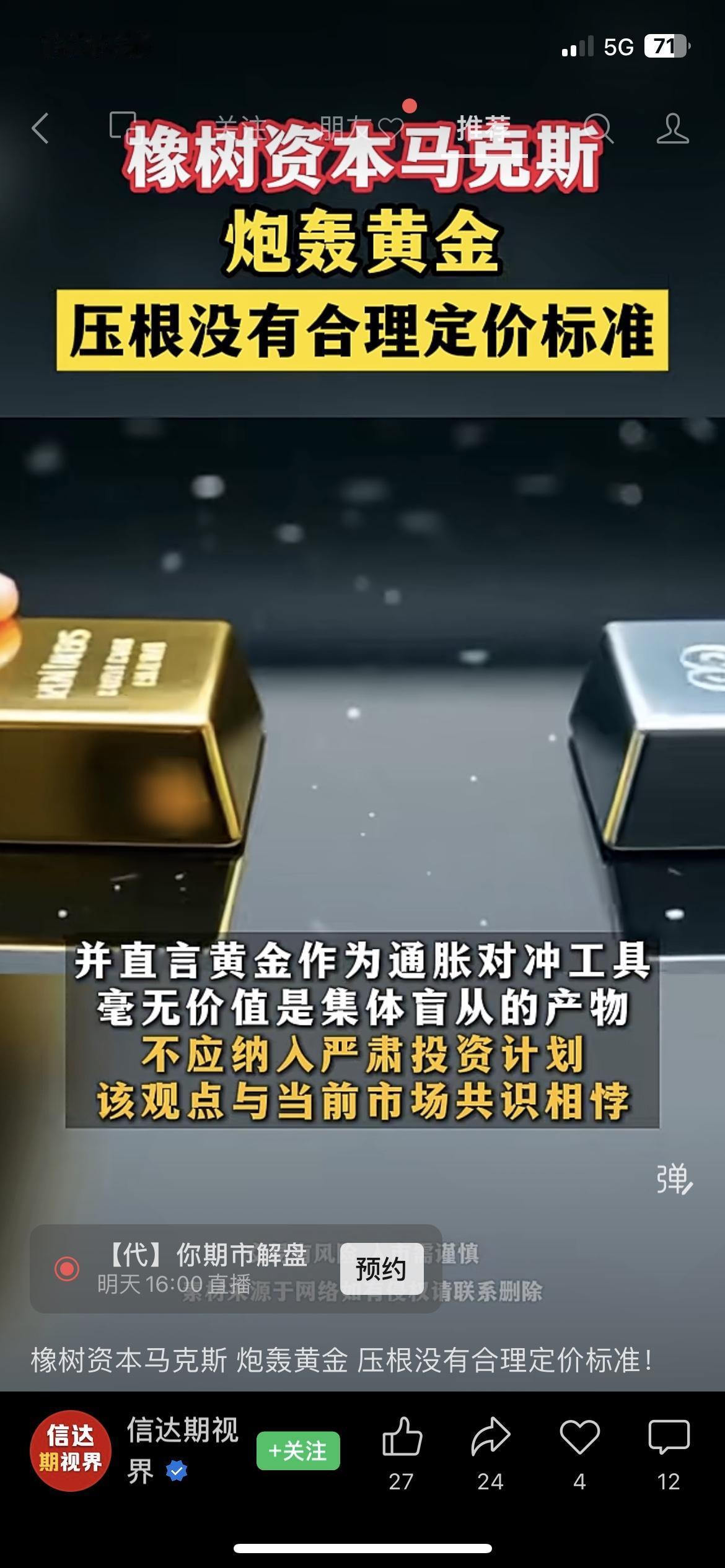 橡树资本炮轰!黄金是骗局? 橡树资本创始人马克斯直接炮轰黄金,说它没有合理定价标准。但2025年国际金价飙涨超60%,创1979年以来最大涨幅,很多人都把它当避险神器。其实普通人别乱追高,黄金波动太大,不如选规模10亿以上的宽基ETF更稳。市场有风险,投资需谨慎。 黄金不是保险箱,是考验心态的照妖镜。 你现在手里有黄金理财吗? 黄金理财 ETF