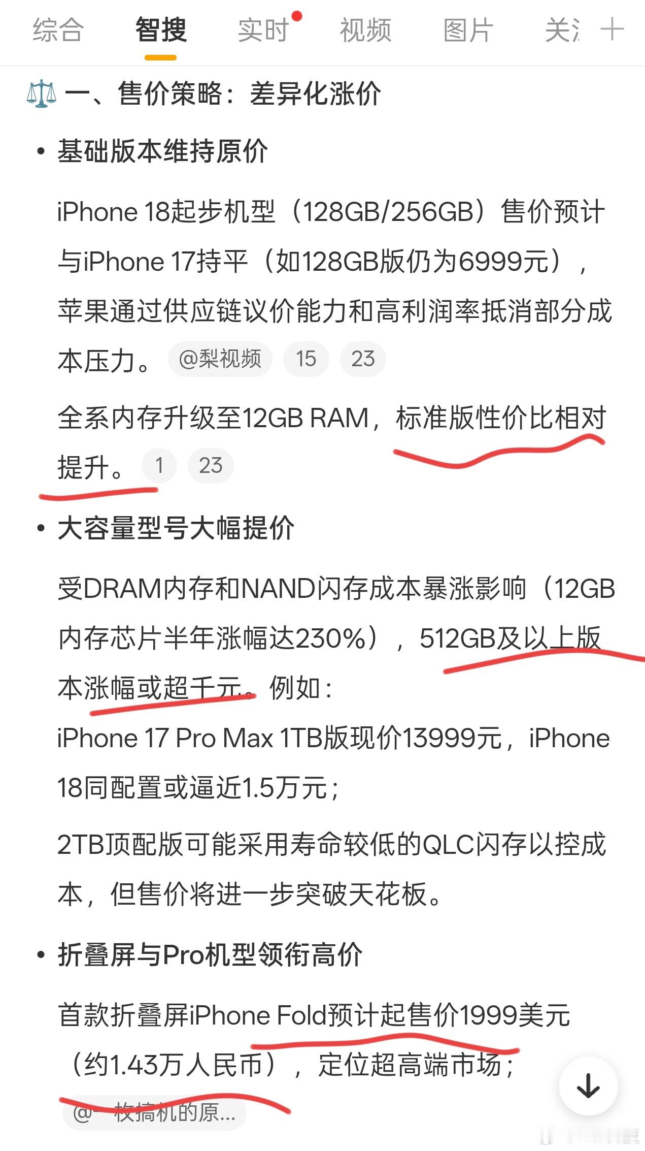 标准版改12GB内存可能是为了国行AI体验正式上线,继续稳住销量,其他版本大幅上调就不合理了,果子还是一如既往的金子内存……别的不说,改左上角单挖孔完全不考虑,太丑了iPhone18系列售价曝光