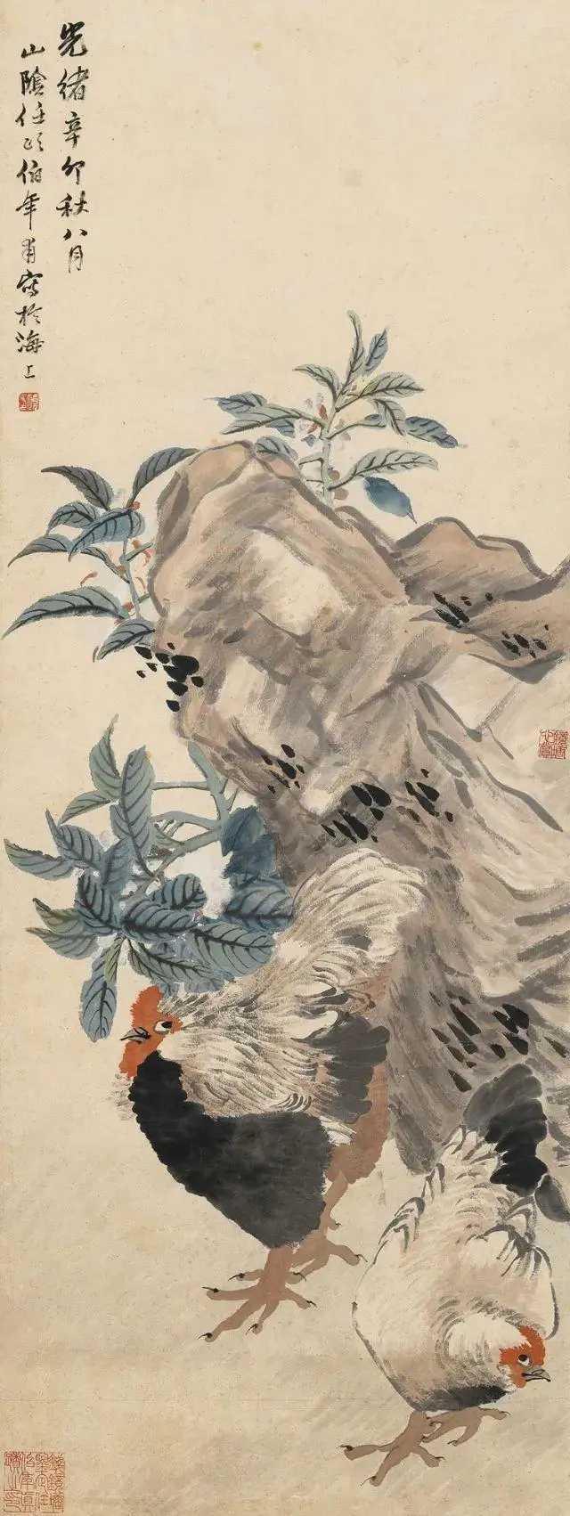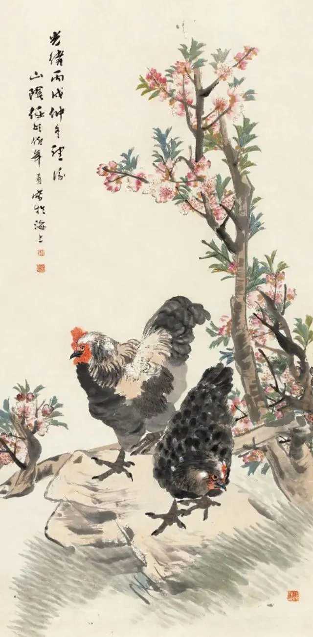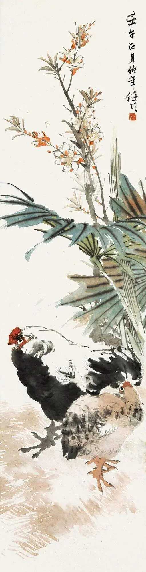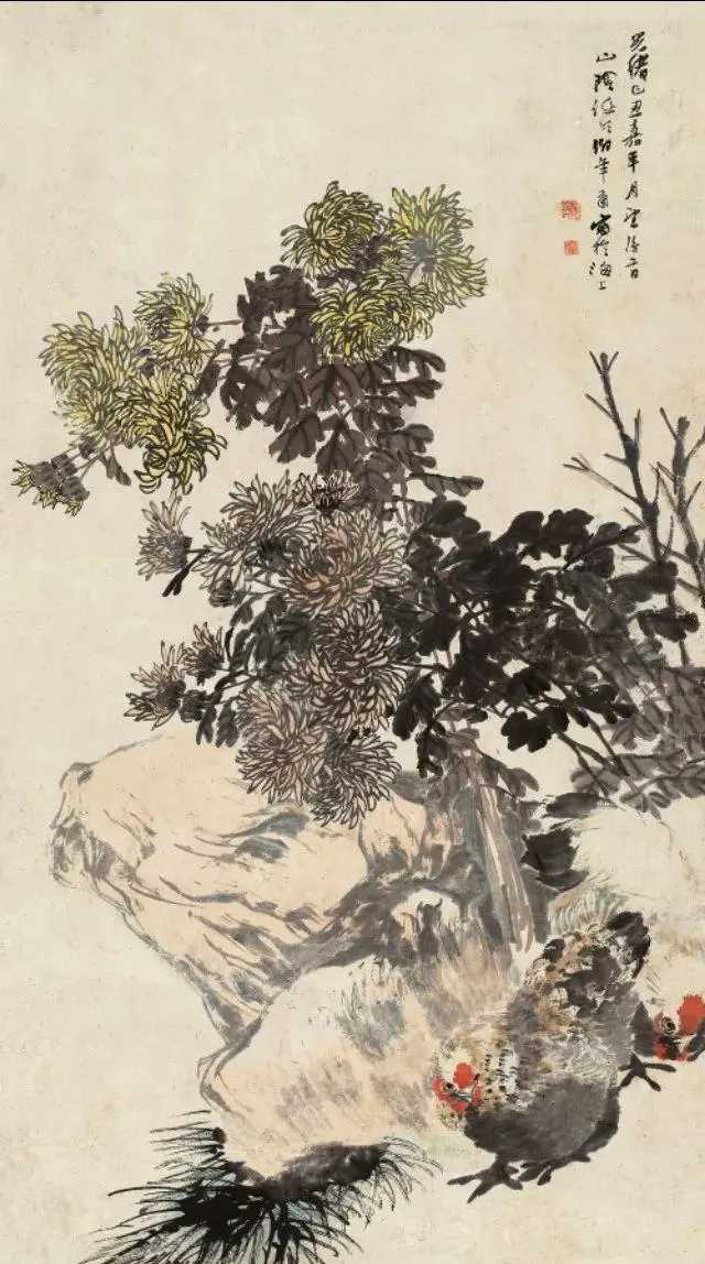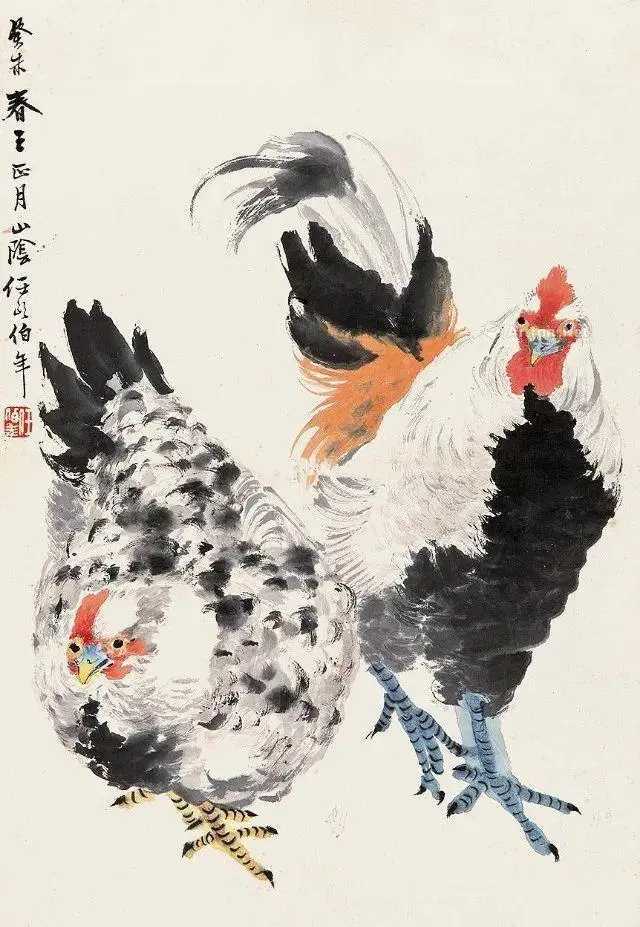 任伯年笔下的鸡,大“鸡”大利。任伯年(1840-1895),名颐,字伯年,是清末著名的海派画家,与吴昌硕、蒲华、虚谷并称为“清末海派四杰”。任柏年擅长画花鸟,尤其是画鸡,最是为人称道。他笔下的大鸡,笔墨简逸放纵,设色明净淡雅,给人一种柔和、温馨、活泼明快的亲切感,同时也把鸡的生命活力淋漓尽致地跃然纸上,洋溢着自然界生气勃勃的气息。这就是中国风遇见艺术
