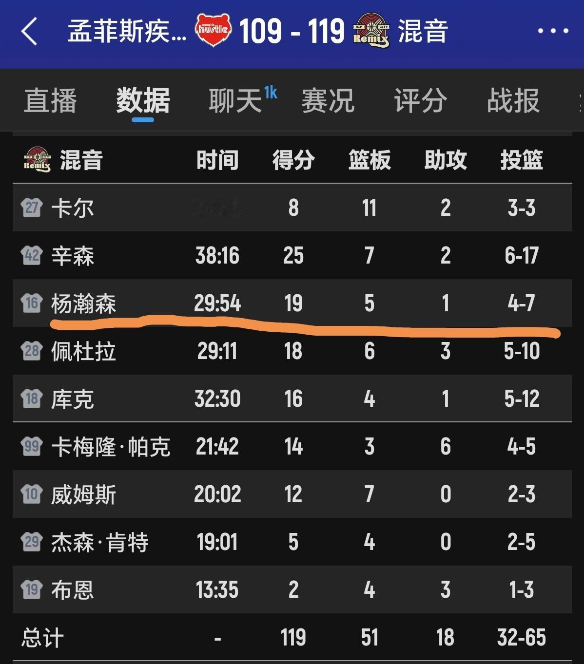 杨瀚森抢篮板时一下子压倒了对手篮下两个队员,明显能看出他脚底不稳,脚步移动太慢,力量欠太缺了! G联赛一上场就被吹2个犯规,第一节打9分钟就有3次犯规,4个失误。 全场上场30分钟,8个失误,5次犯规5,仅摘下5个篮板,前场更是只有1个,虽然有19分的得分,但显然还是不合格的。 好在与在常规赛总飘在外线和浪投3分不同,在G联赛,他更多打在了自己的优势内线,期待练级成功吧!