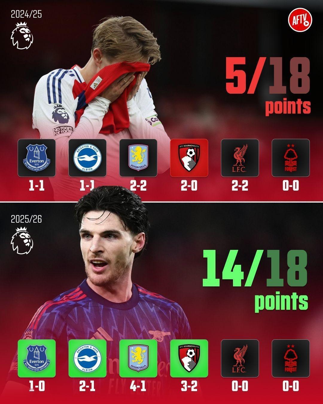 这就是冠军的进步,阿森纳比上赛季同期多拿了9分! 上赛季这4场比赛没拿下来,疯狂丢球。 要是现在少9分,阿森纳只会是英超第三名。 上赛季最后落后10分屈居第二,本赛季把分数都拿回来了![赞]